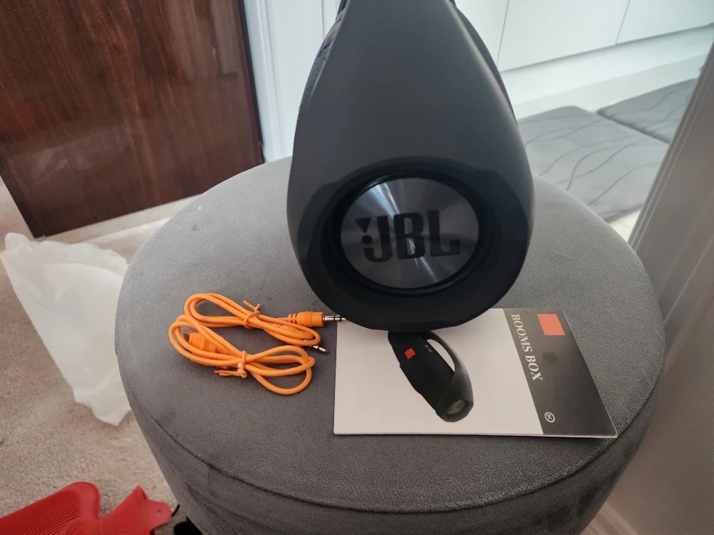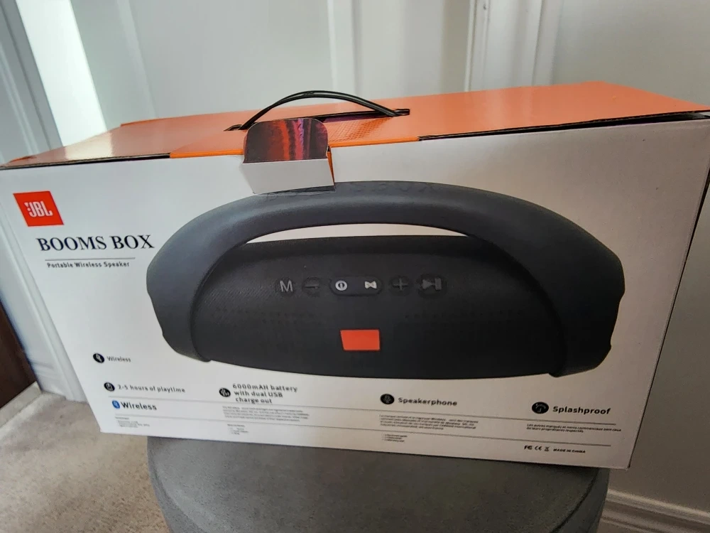Selling a brand new JBL Boombox portable wireless speaker! It's still in its original box and comes with all the original components. This speaker is splashproof and boasts a 6000mAh battery with dual USB charge out for your devices. Get ready to enjoy 3-5 hours of playtime with this powerful and portable speaker!