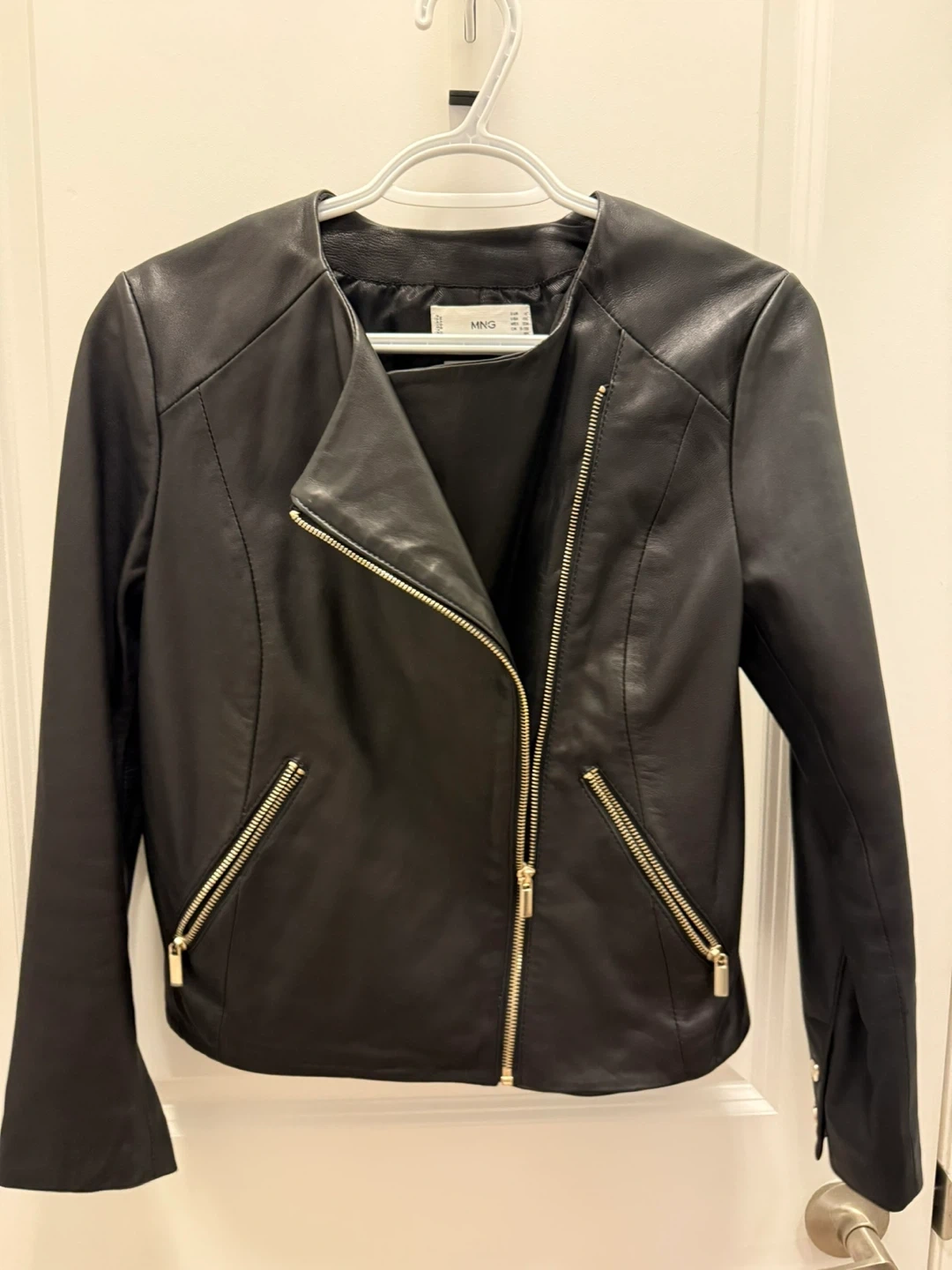 Selling a stylish MNG black leather jacket in size XS. It's never been used and in great condition. Must be picked up by Nov 30. Interested buyers only.