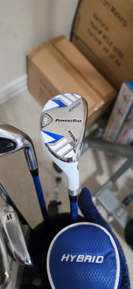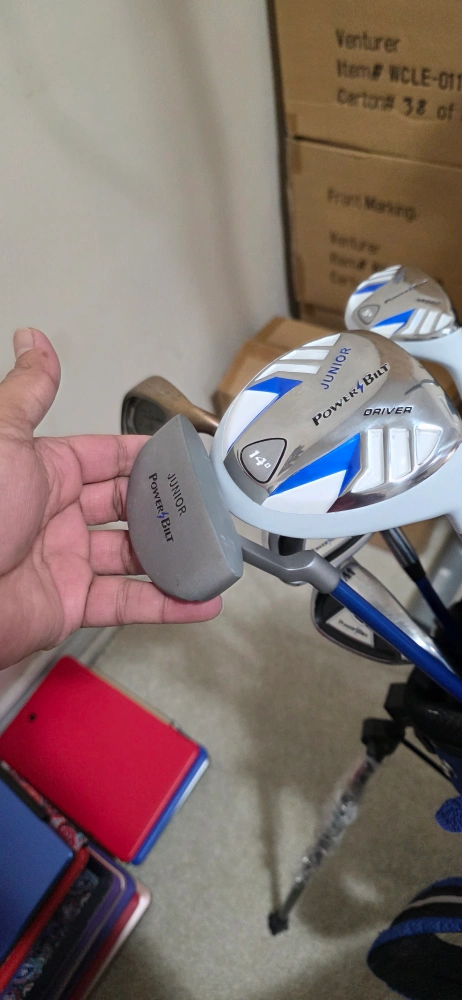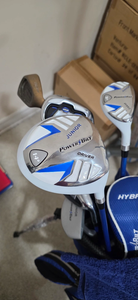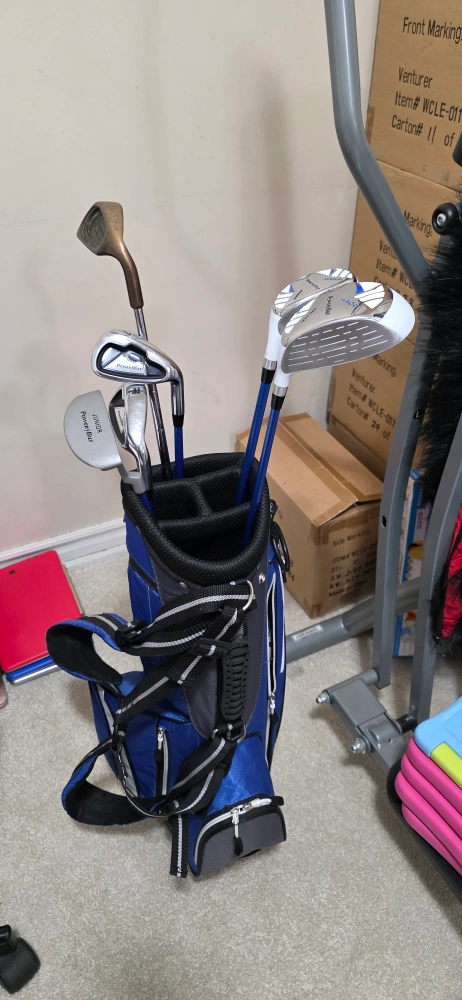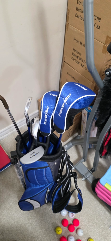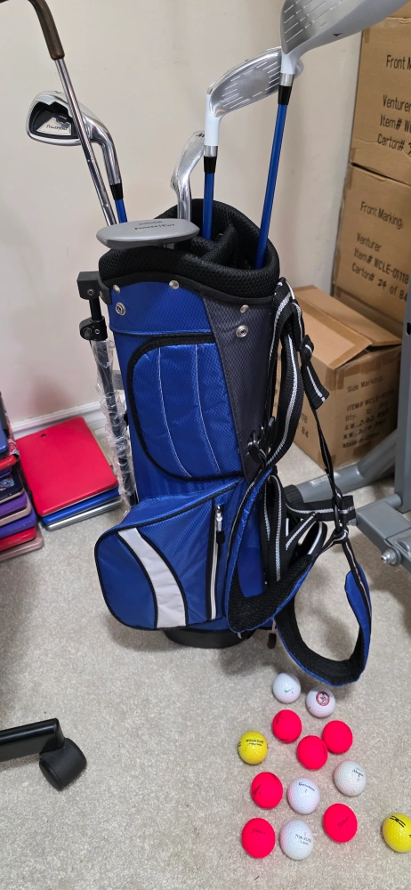 used Selling a Powerbilt junior golf set, perfect for getting your little one started on the course! The set comes with a bag and a collection of golf balls. The bag is blue and in great shape. Ready for a new junior golfer to enjoy!