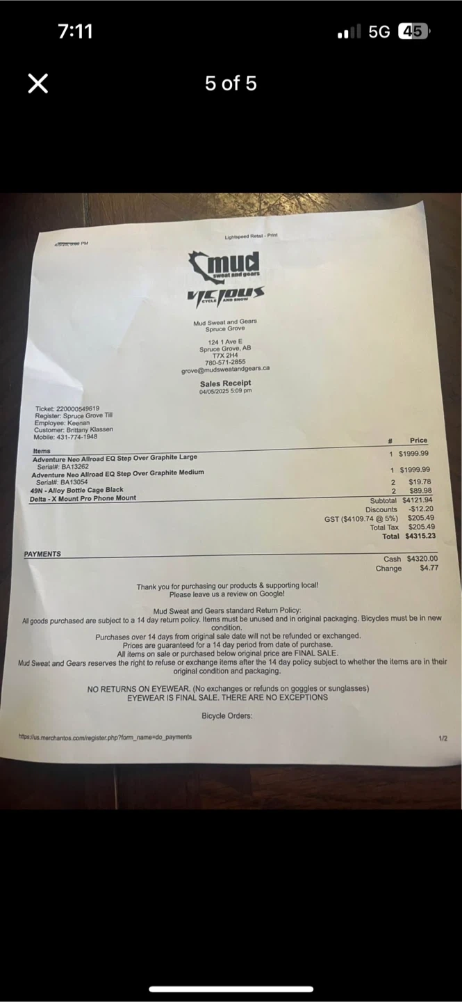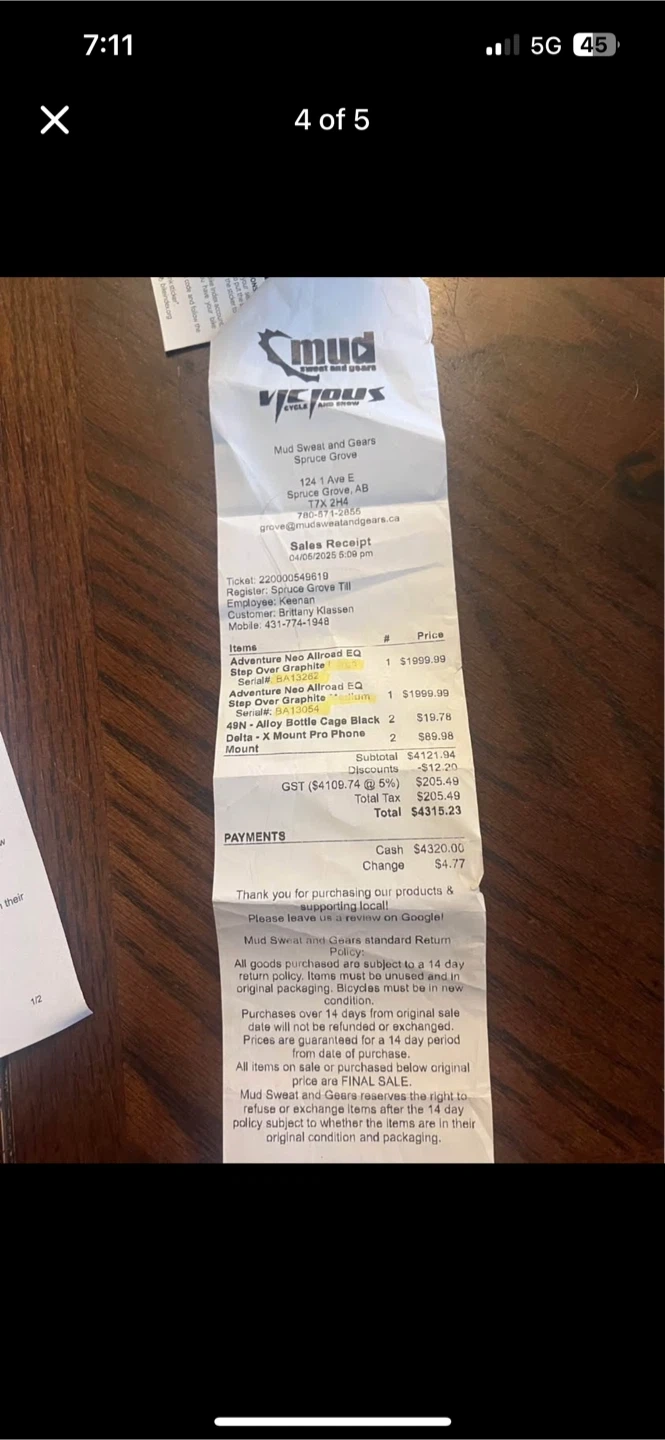 E bike bought new in spring can’t ride disabled 71.7 km only road a few times been stored inside house never rained on 1500 size is medium text Brit 431-774-1948