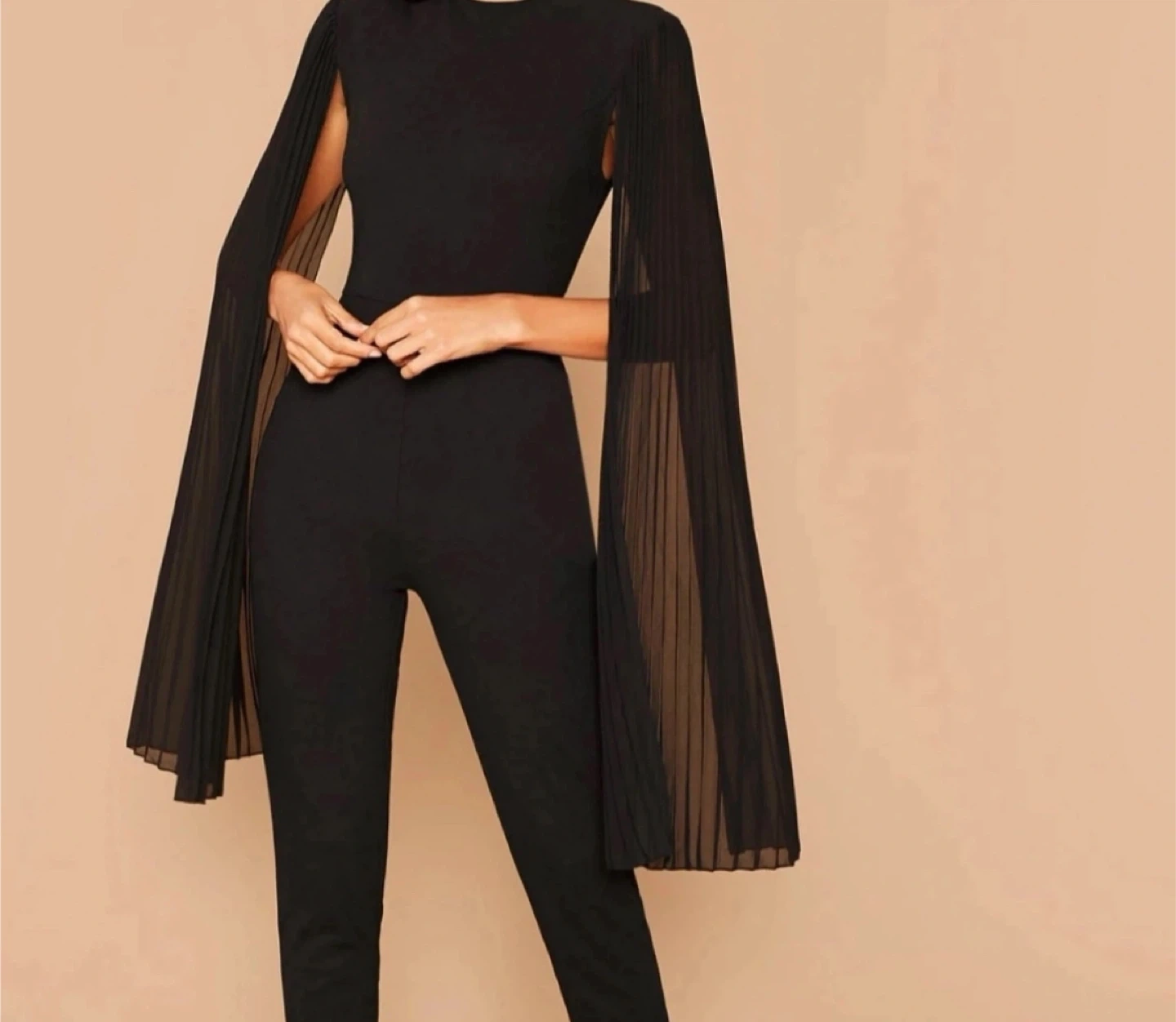 Selling a stylish black jumpsuit with cape sleeves! It’s new and ready for a new home. Perfect for a night out or a special occasion