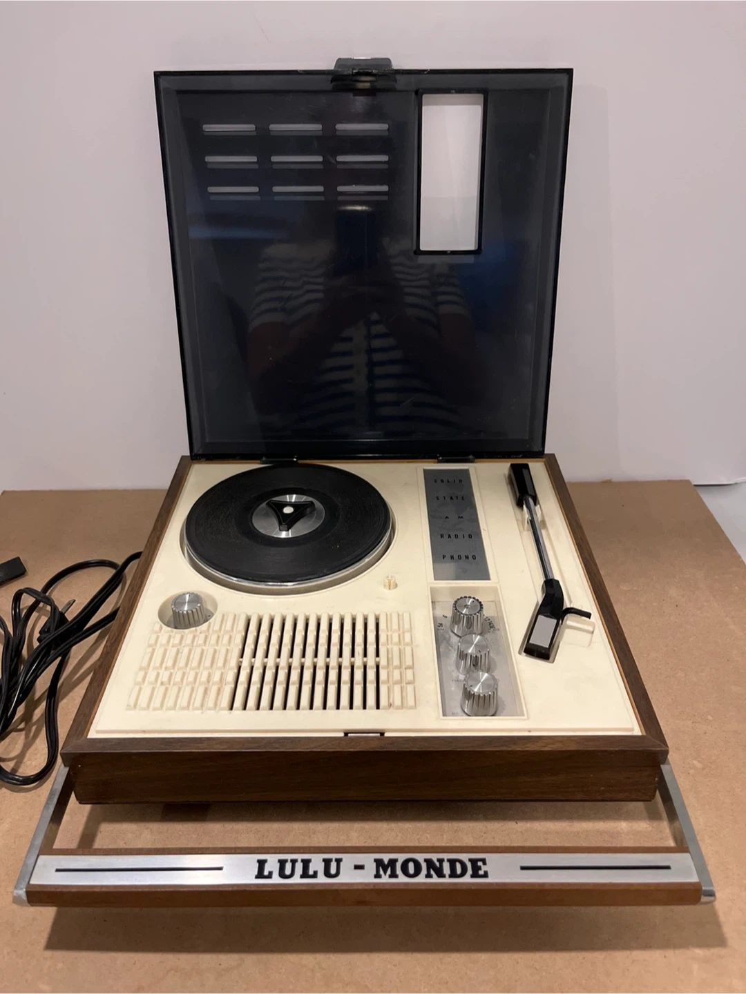 Selling a Lulu-Monde solid state portable radio phonograph. It operates on AC/batteries, and the original box is included!