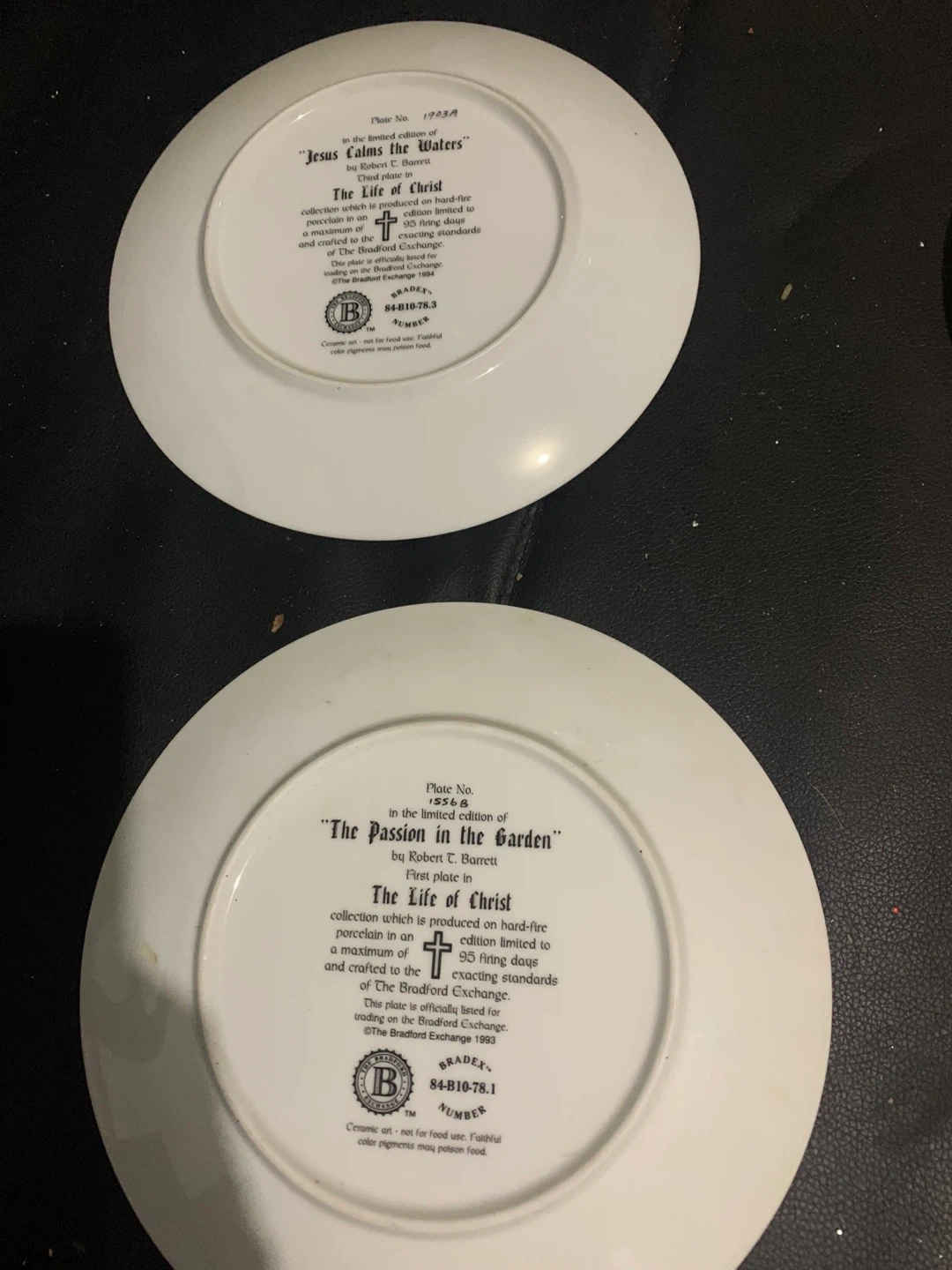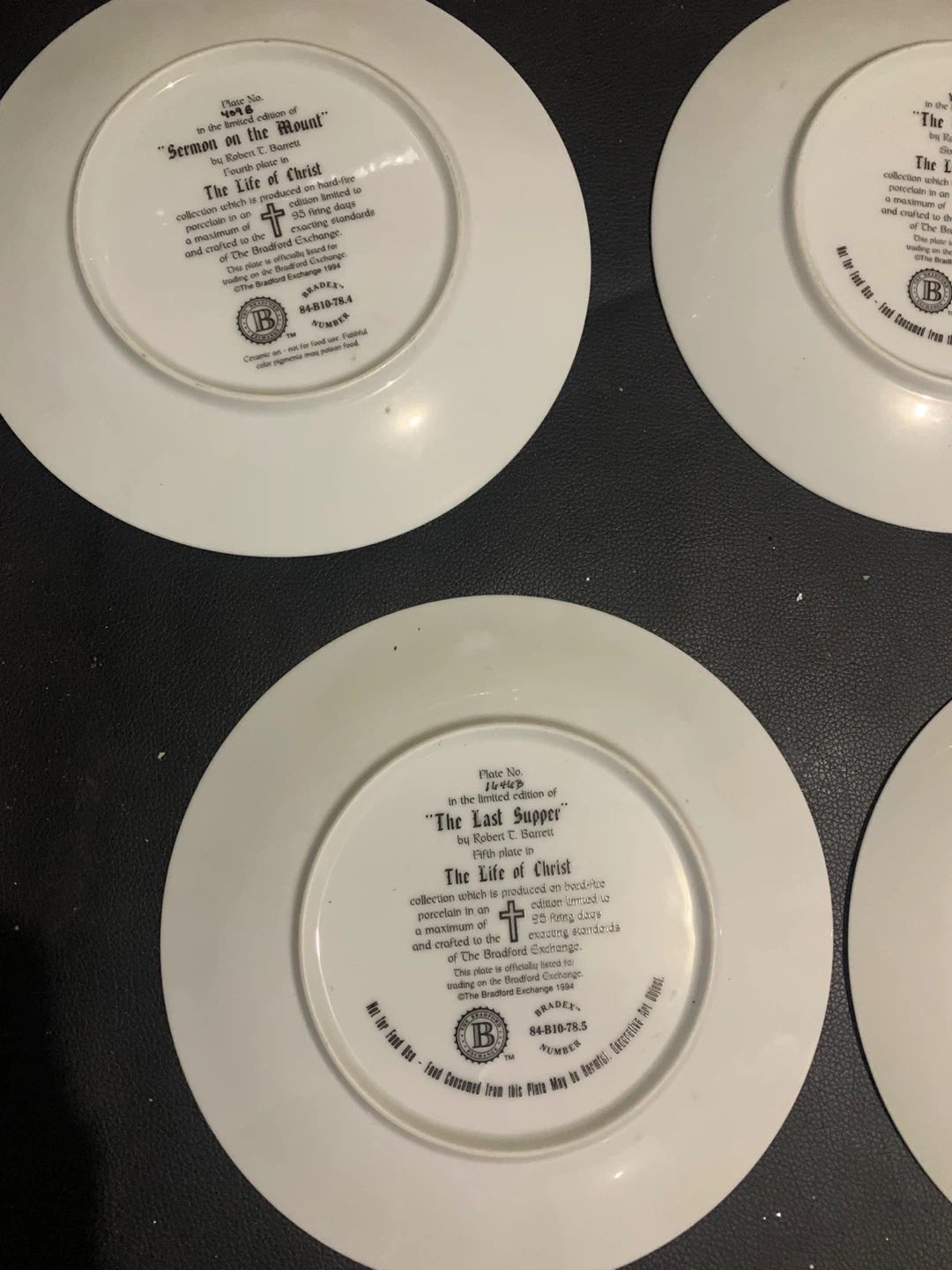 Selling a collection of Bradford Exchange collector plates titled "The Life of Christ" by Robert E. Barrett. Each plate is eighth in the collection and is plate No. 2278. These plates are limited to a maximum of 95 firing days and were officially traded on the Bradford Exchange in 1994