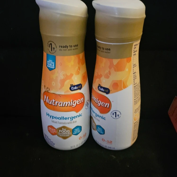 Selling two bottles of Enfamil Nutramigen Hypoallergenic Infant Formula with Iron. Each bottle contains 32 fl oz (946 ml) of ready-to-use formula for babies 0-12 months. Expiration Date: 2026 may 01