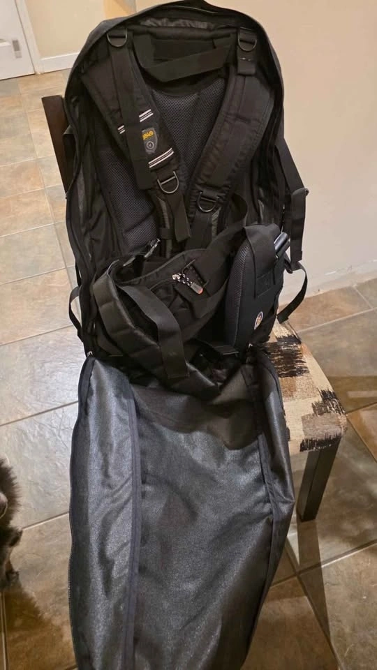 great backpack with removable day pack, rain cover, straps cover for air travel, shoulder strap, lots of room for all your belongings