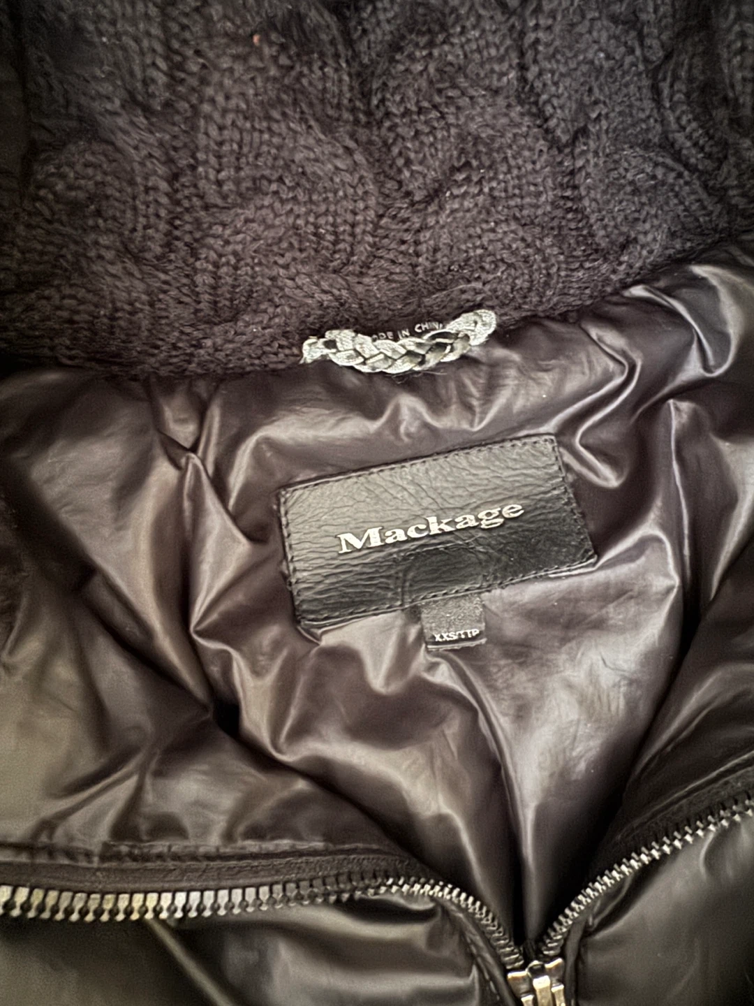 Selling a Mackage down winter coat in size XXS. It's in great condition and ready to keep you warm this winter! The coat is black with a fur-trimmed hood.