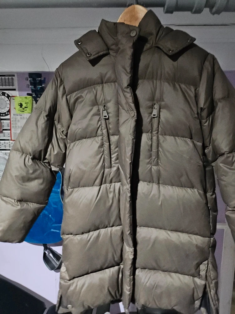 Selling a Zara puffer jacket in a stylish olive green color. It's in great condition and ready to keep you warm! The jacket features a comfortable fit and a sleek design. Perfect for everyday wear during the colder months!