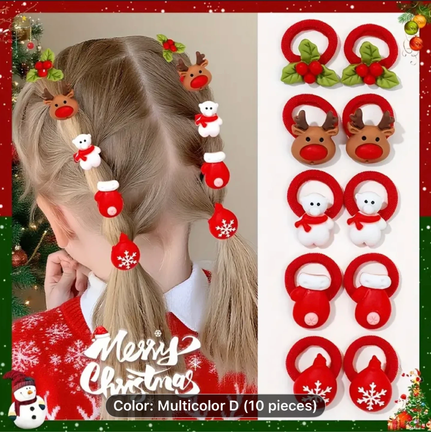 Get ready for the holidays with these adorable Christmas-themed hair ties! Each set comes with 10 pieces in various festive designs. Perfect for adding a touch of holiday cheer to any hairstyle!