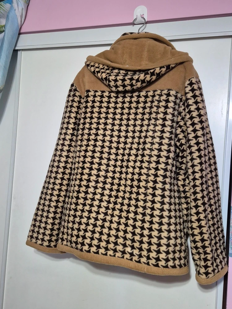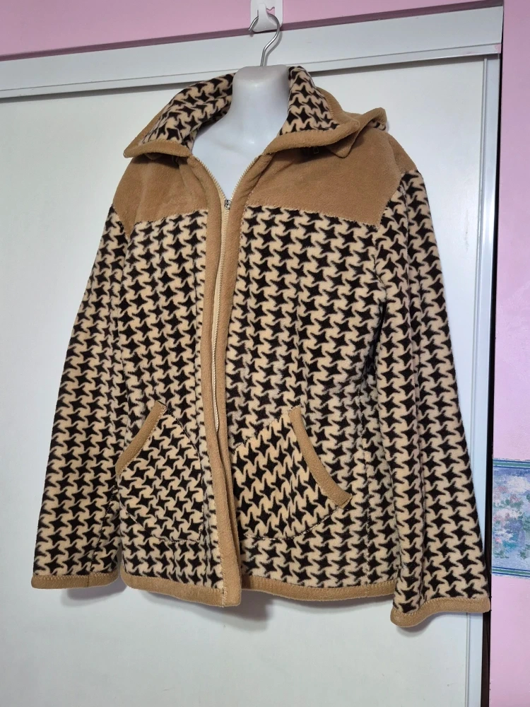 Cozy up in this stylish houndstooth fleece jacket! It's perfect for adding a touch of warmth and flair to your outfits. The soft fleece material makes it super comfortable for everyday wear