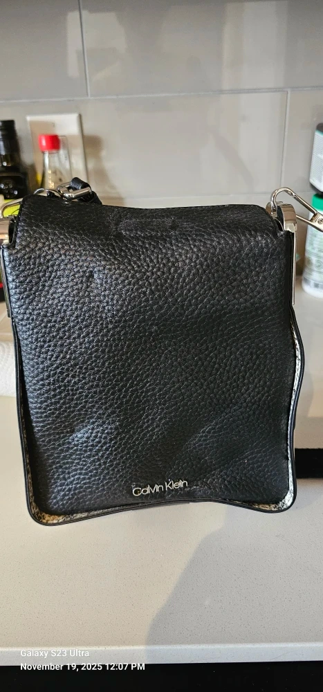 This is a stylish Calvin Klein shoulder bag in black leather. It's in great condition and ready for a new home! Originally bought for $198, this bag is a steal
