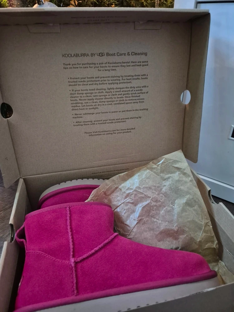 Selling a brand new pair of KOOLABURRA by UGG Mini II boots in a vibrant pink colour, size US 6! These cozy boots provide comfort with the plush faux-fur lining. This soft and cozy interior ensures your feet stay warm and comfortable, making these casual shoes perfect for both indoor and outdoor wear. They come in the original box, ready for a new home. Asking $50. Pick-up location 333 Taralake Way NE also able to meet some weekdays at 731 6 Avenue SW.