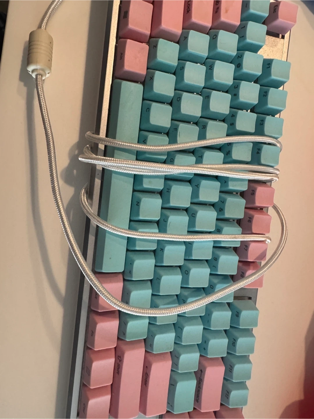 Selling an ABKO Hacker K935P V2 mechanical keyboard. It's in great condition and ready for a new home! The keyboard features a unique pink and blue keycap design. Feel free to reach out if you're interested or have any questions!