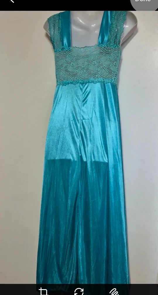 Beautiful turquoise nightgown with a delicate lace top. It's in great condition and ready to bring a touch of elegance to your bedtime routine