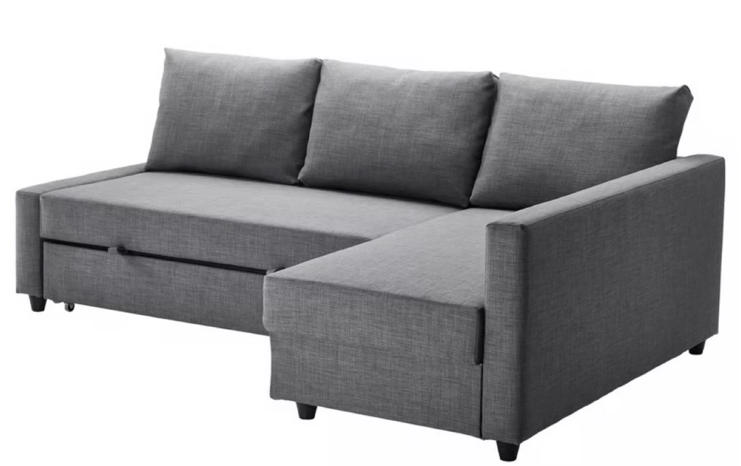 Selling an IKEA Friheten sleeper sectional sofa in grey! It's in great condition and super comfy. Perfect for small spaces and guests. The sofa easily converts into a bed for extra sleeping space. It also has built-in storage under the chaise for blankets and pillows. A practical and stylish addition to any home!