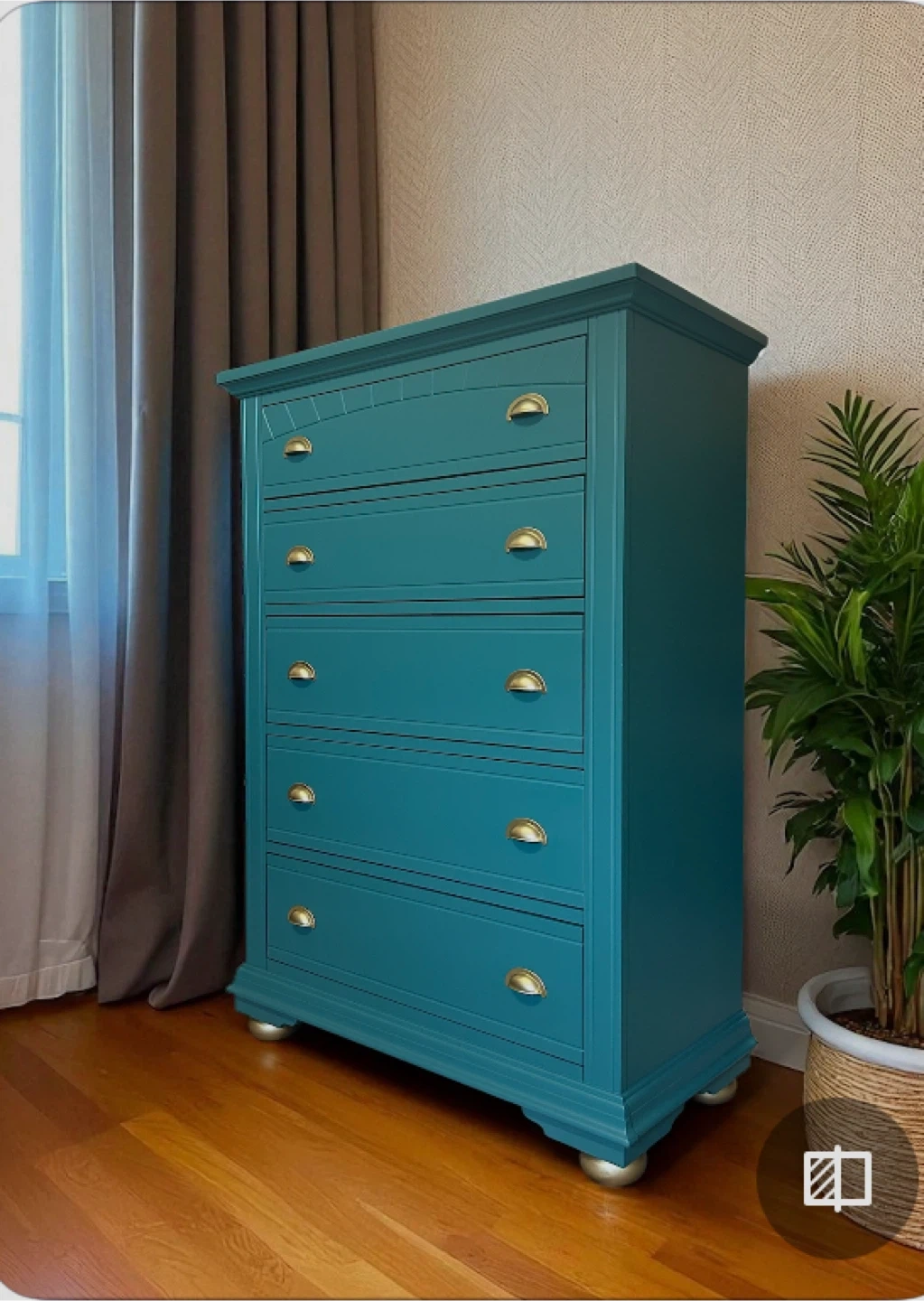 Ashley dresser with five drawers. It's a great size for a bedroom or even an entryway. With gold hardware and the drawers slide smoothly. This dresser has been well taken care of and is ready for a new home. Pick up only-Transcona