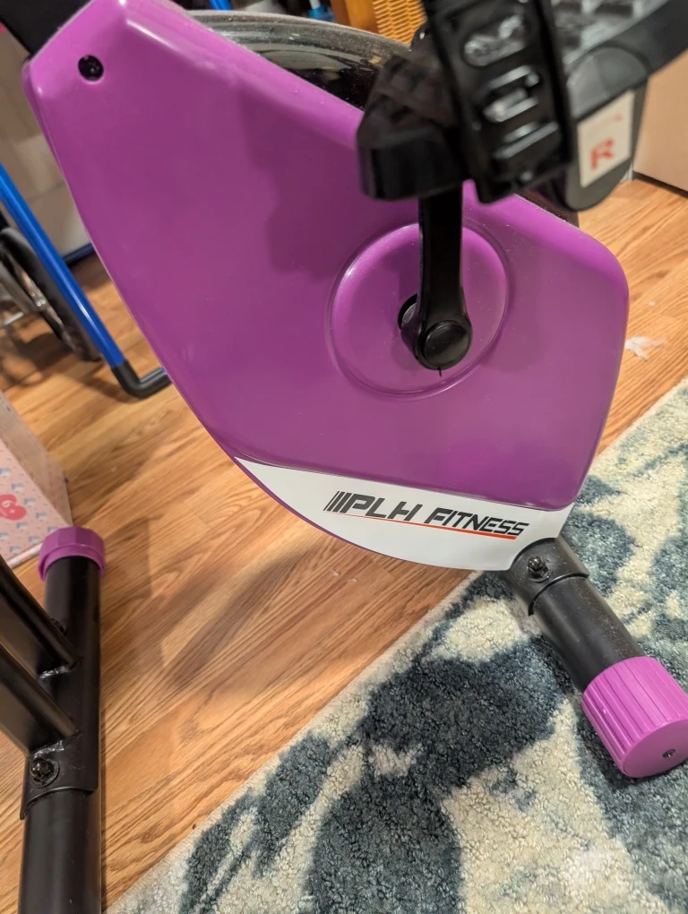 Selling a PLH Fitness exercise bike in great condition! It's a stylish purple colour and has a display to track your time, speed, distance, calories, and pulse. Perfect for getting a workout in at home!