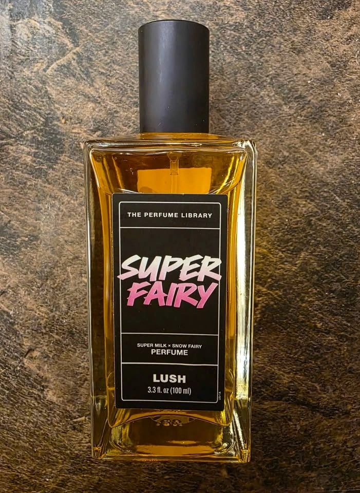 🧚♀️SUPER FAIRY is a LIMITED EDITION fragrance created as a mash-up of two Lush bestsellers: Snow Fairy and Super Milk. This playful combination brings together Snow Fairy's signature cotton candy sweetness with Super Milk's creamy lemon-vanilla notes, creating a unique scent profile described as sweet candyfloss, zesty citrus, and delicious vanilla. The fragrance features lime oil and synthetic musk that create a rich, sweet, and slightly powdery backdrop enhancing the sugary top notes.🩷