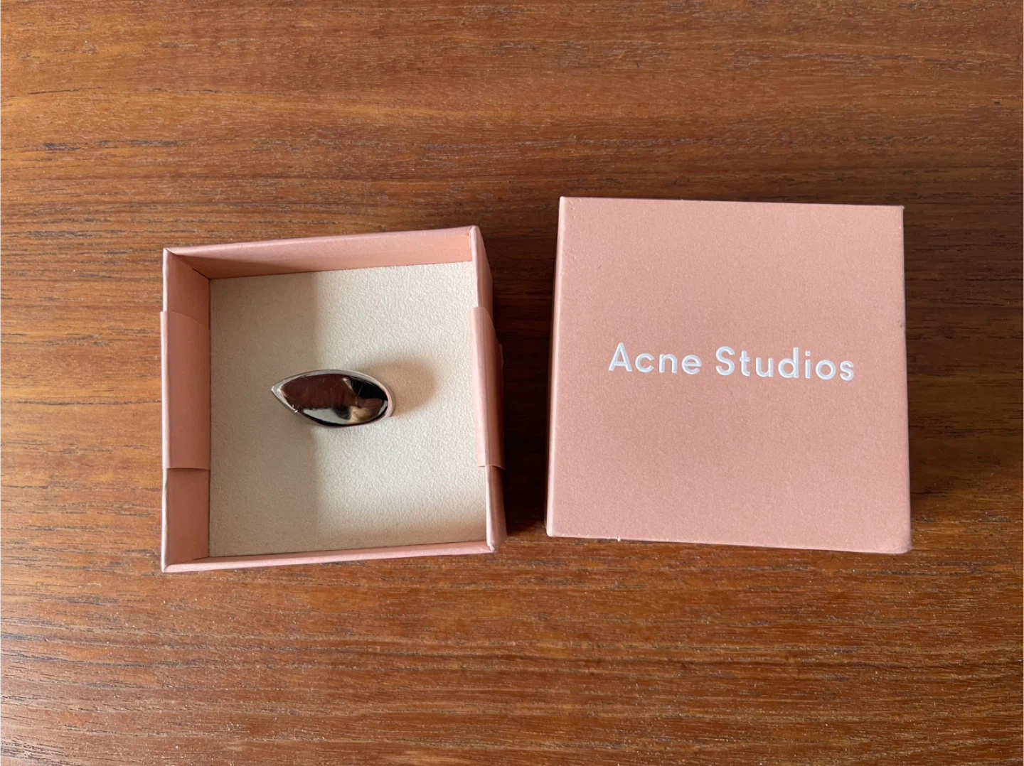 Selling a ring from Acne Studios. It's a beautiful silver tone and comes with its original box. It's in great condition!