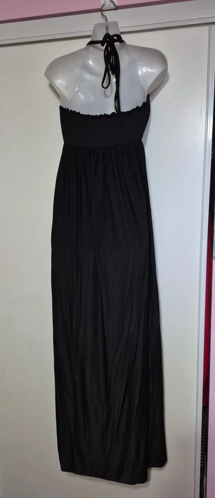 Selling a lovely black halter maxi dress! It's perfect for summer days or evenings out. The dress is in great condition and has a flattering fit. It's a stylish and comfortable choice for any occasion