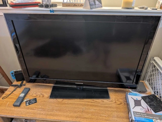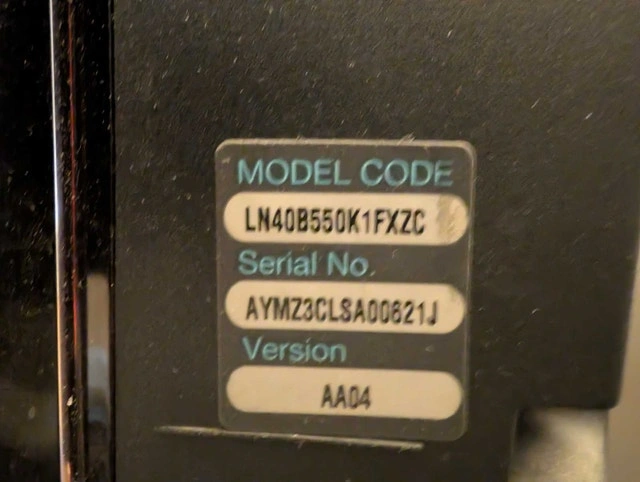 I'm selling a used Samsung 40-inch TV, model LN40B550K1FXZC, that's perfect for a spare room or cottage! This LCD TV delivers a great viewing experience with its crisp picture quality and reliable performance. The photos show the various input options and the TV displaying a vibrant picture. It is in good working condition, ready to plug and play! No remote as we use a universal one.