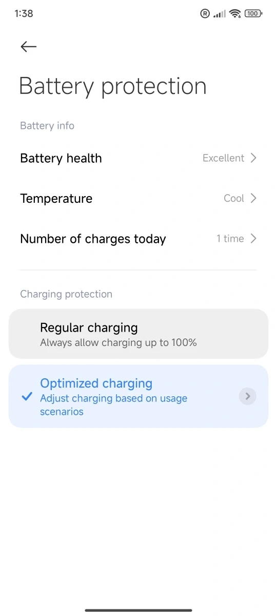 The battery capacity is 4500mAh and the battery health is excellent! Runs on HyperOS by Xiaomi.