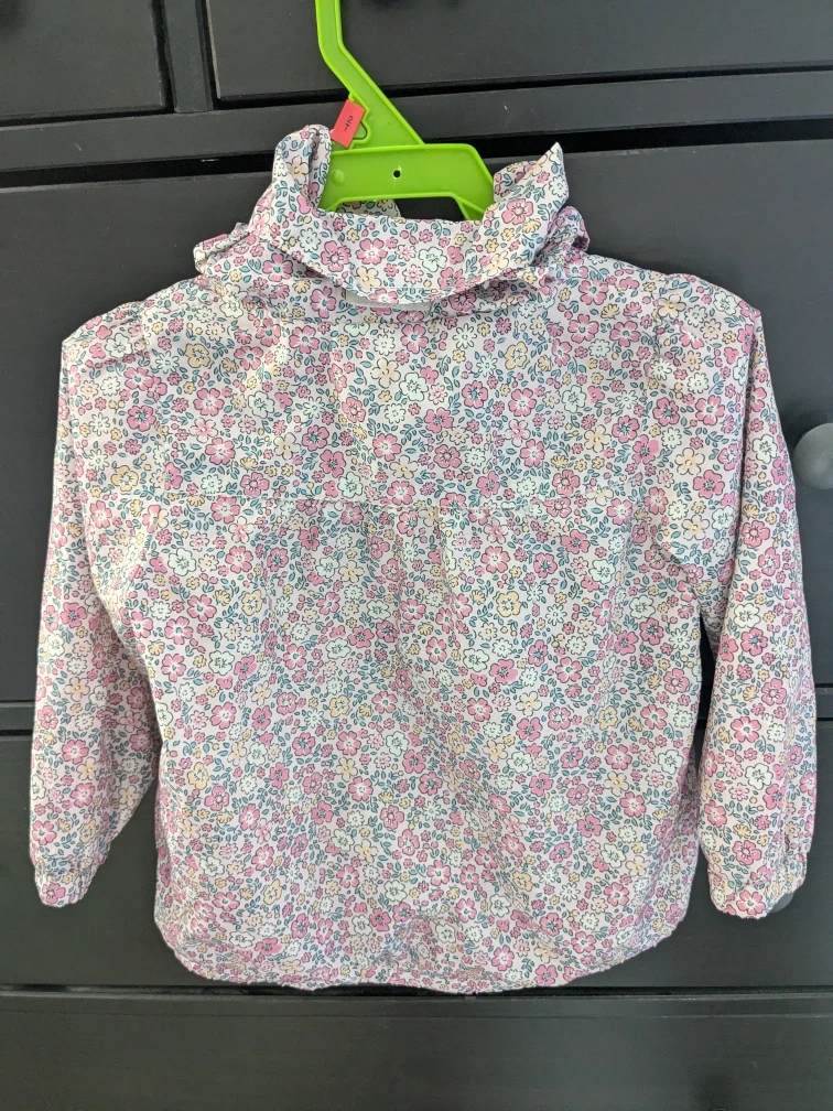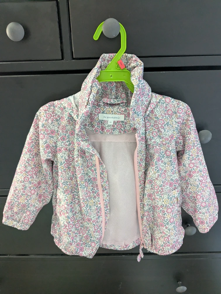 Super cute floral jacket for spring! It's in great condition . Size 80.This jacket has a packable hood.