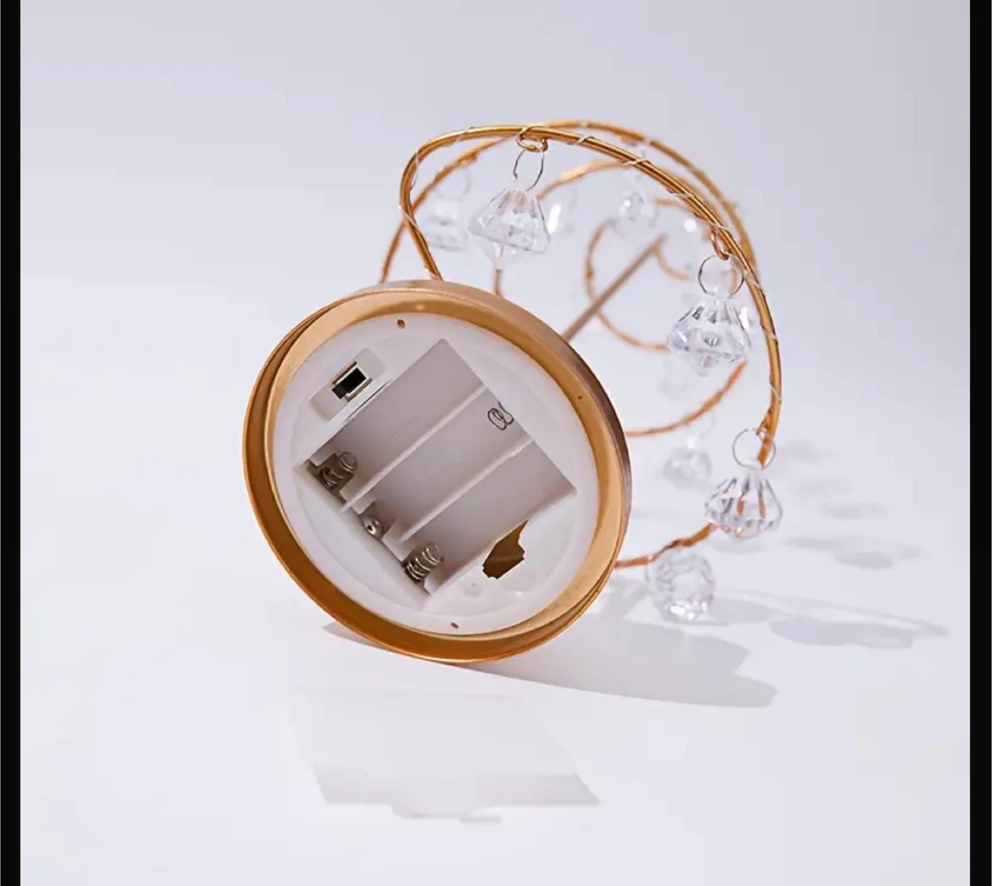 Add a touch of sparkle to your holidays with this adorable gold spiral Christmas tree! It features crystal drops and a star on top. It stands about 12.4 inches tall and the base is 5.51 inches in diameter. Batteries not included