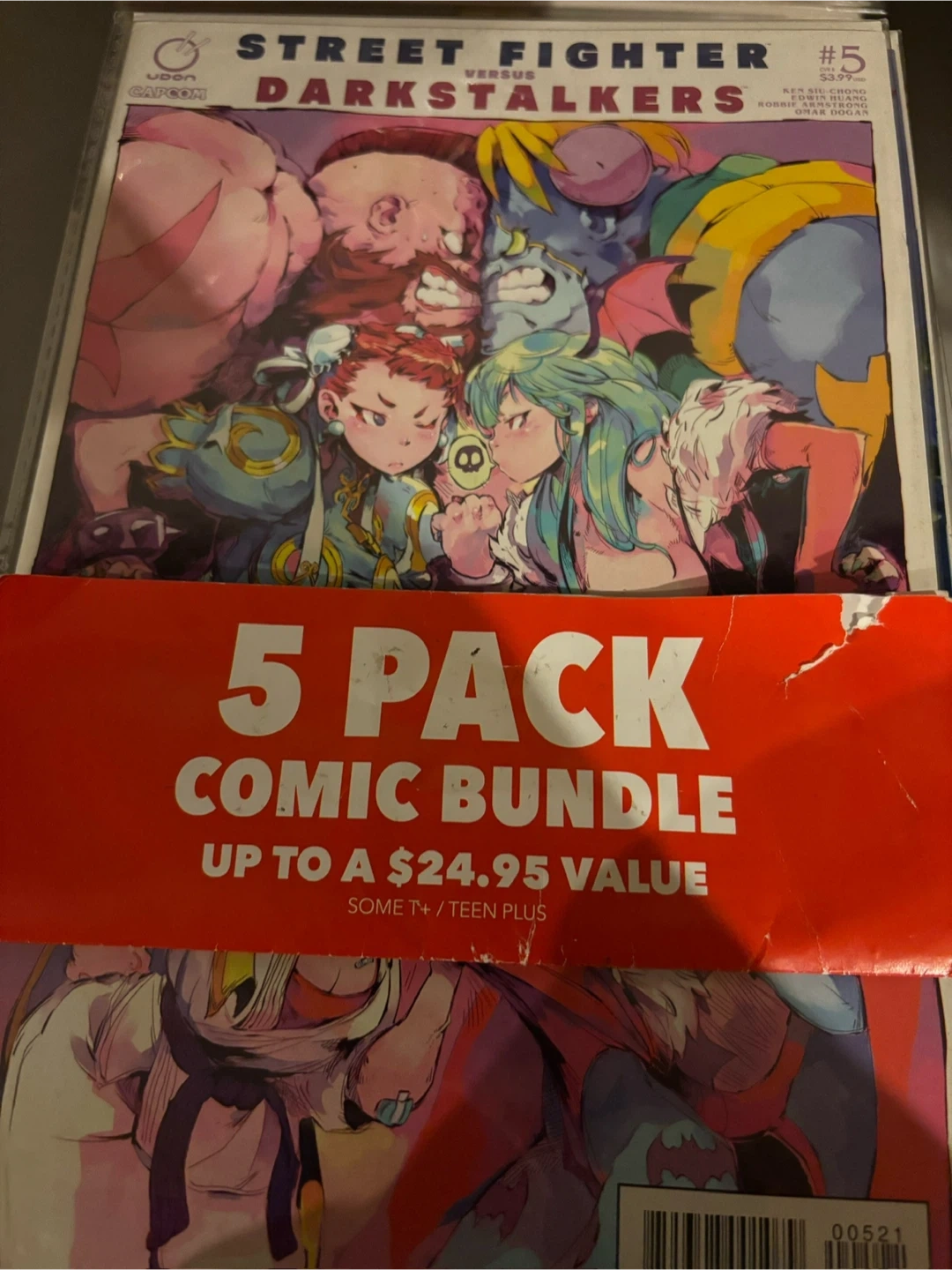 Selling a 5-pack comic bundle featuring Street Fighter versus Darkstalkers! This bundle is valued at up to $24.95 and includes some T+/Teen Plus comics