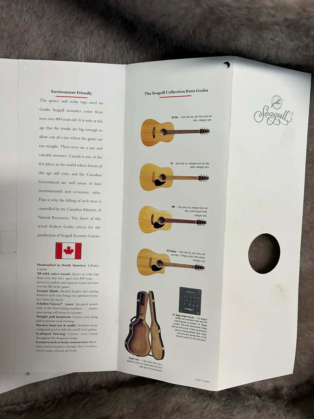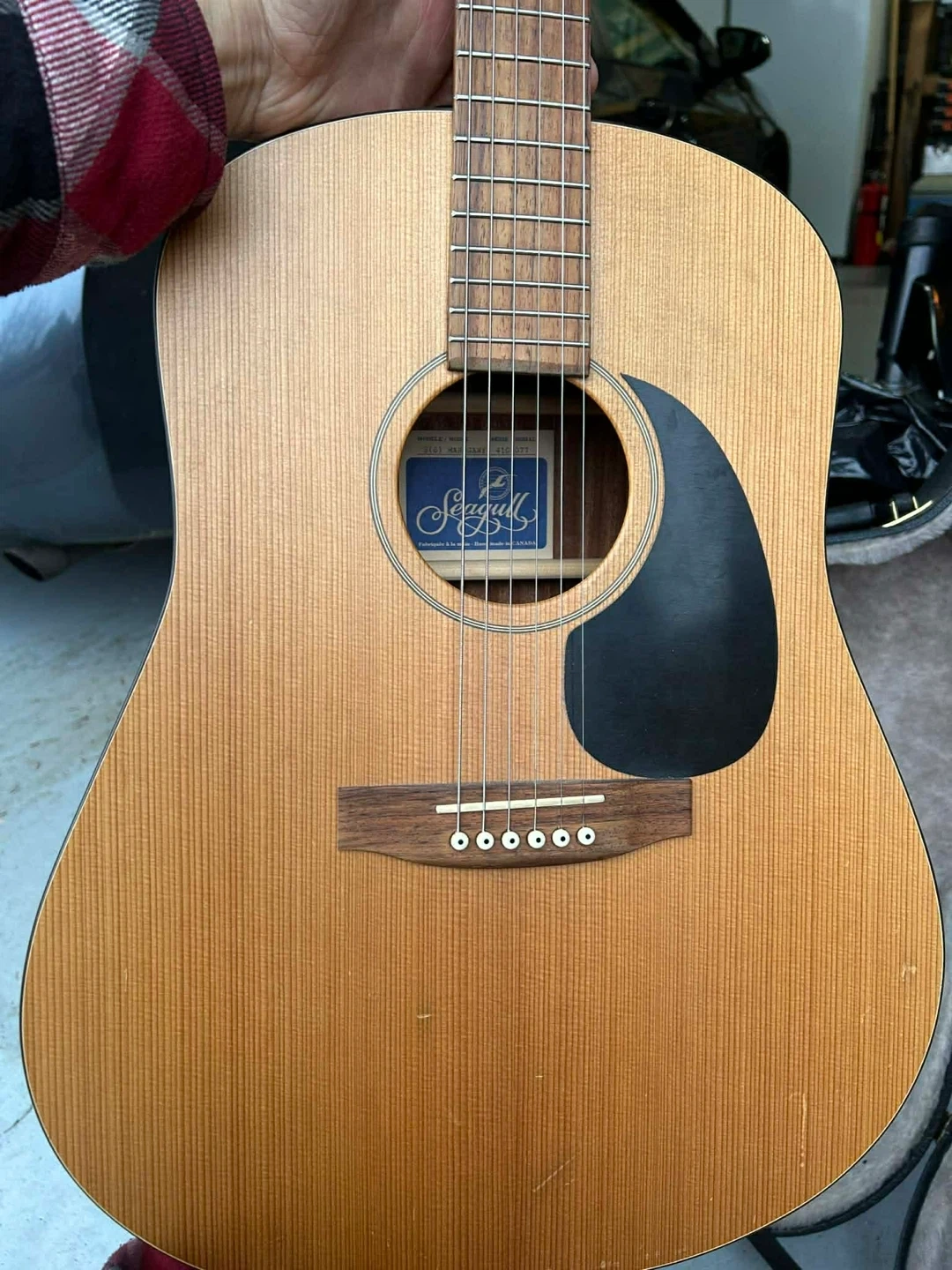 Selling a Seagull acoustic guitar that's in great shape! It comes with a hard case to keep it protected. This guitar has a lovely warm tone and is perfect for beginners or experienced players alike. The case is also in excellent condition, ensuring your guitar stays safe during transport. Feel free to reach out if you'd like to give it a strum!