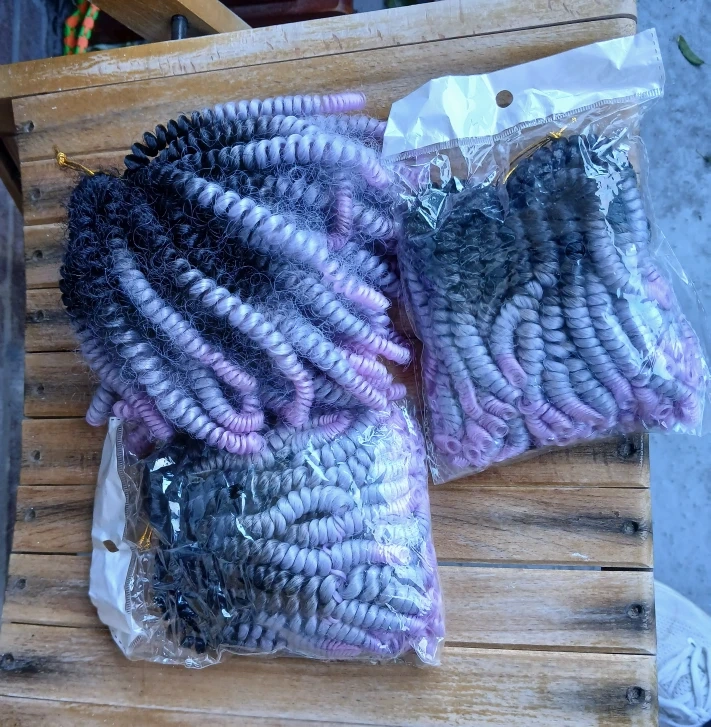 Selling 8 inch pre-looped crochet hair extensions in a beautiful black to lavender ombre colour. These are perfect for adding volume and length to your hair with a fun, vibrant twist