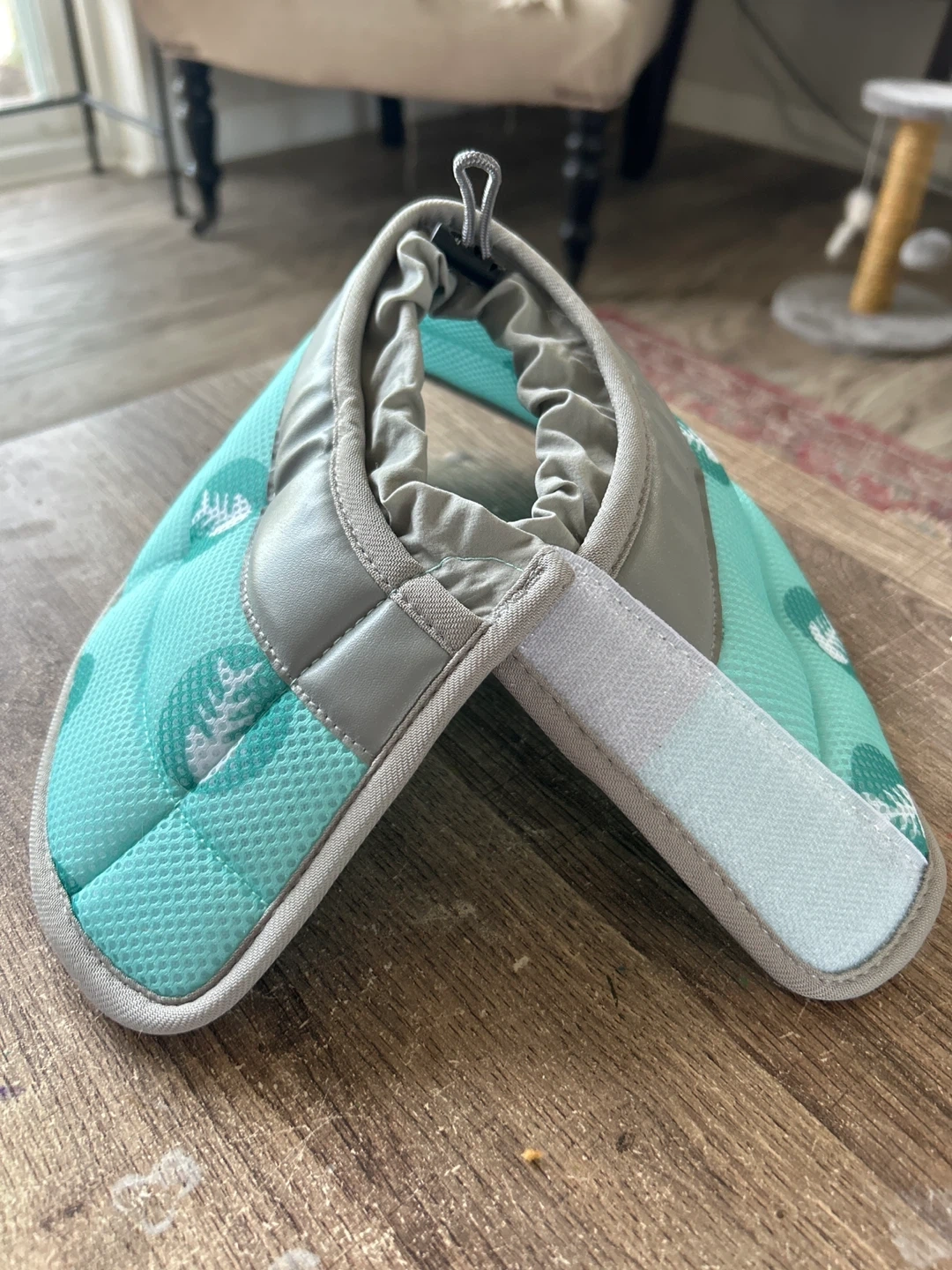 As good as new. I bought these for my cat when she had surgery but ended up not using either. The soft collar makes it easy to access food and water and much more comfortable than the standard plastic collars. The surgery suit prevents the cat from accessing sutures.
