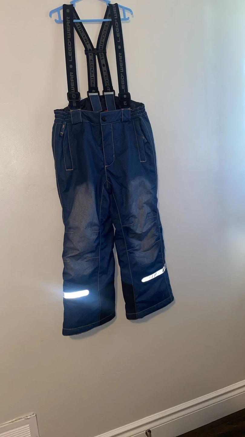 Here are a pair of LEGO Wear snow pants for kids. They feature adjustable suspenders and reflective stripes on the lower legs for added safety. Great for keeping your little one warm and dry during winter activities!