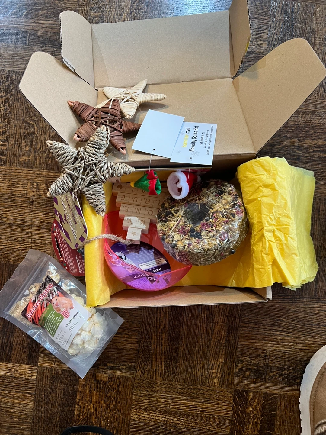 Selling a Hamster Mail box filled with fun toys and tasty treats for your furry little friend! The box includes a variety of items to keep your hamster entertained and happy. Perfect for spoiling your hamster with new things to explore and enjoy