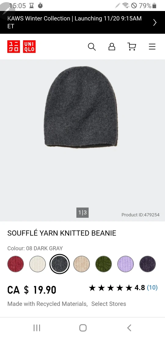 Keep warm with this Uniqlo Soufflé Yarn Knitted Beanie in dark gray! It's made with recycled materials and originally retailed for $19.90.