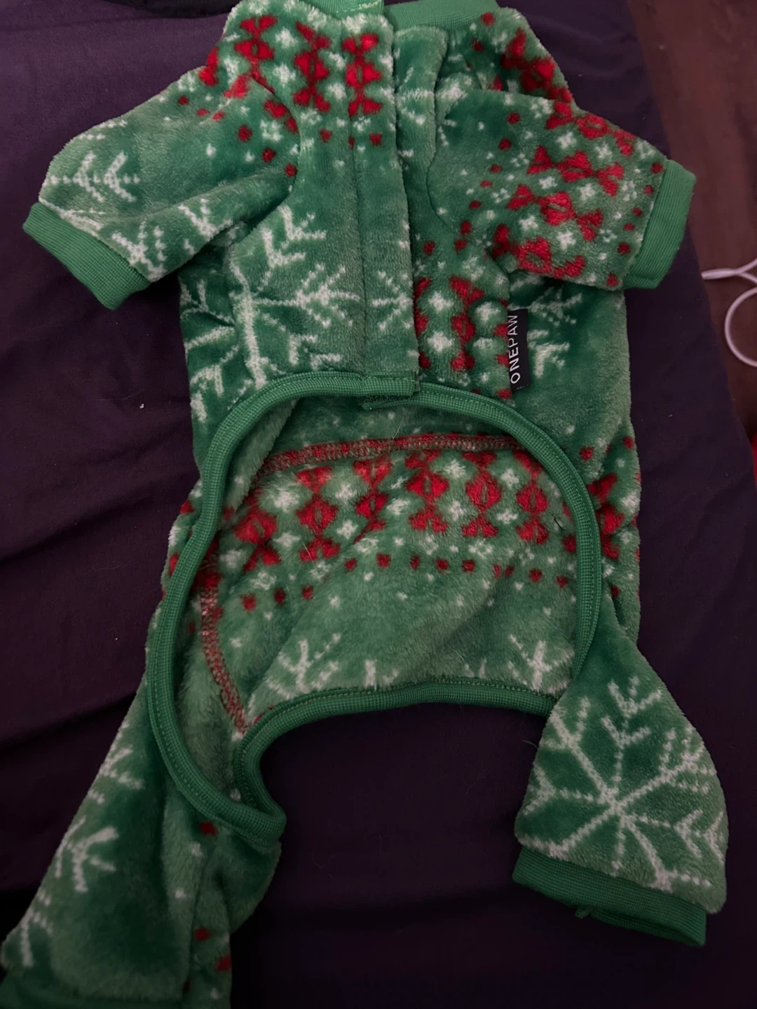 Keep your furry friend cozy this winter with these adorable ONEPAW dog pajamas! They're green with a festive Christmas snowflake and reindeer design. Perfect for keeping your pup warm on chilly nights! Size is small.
