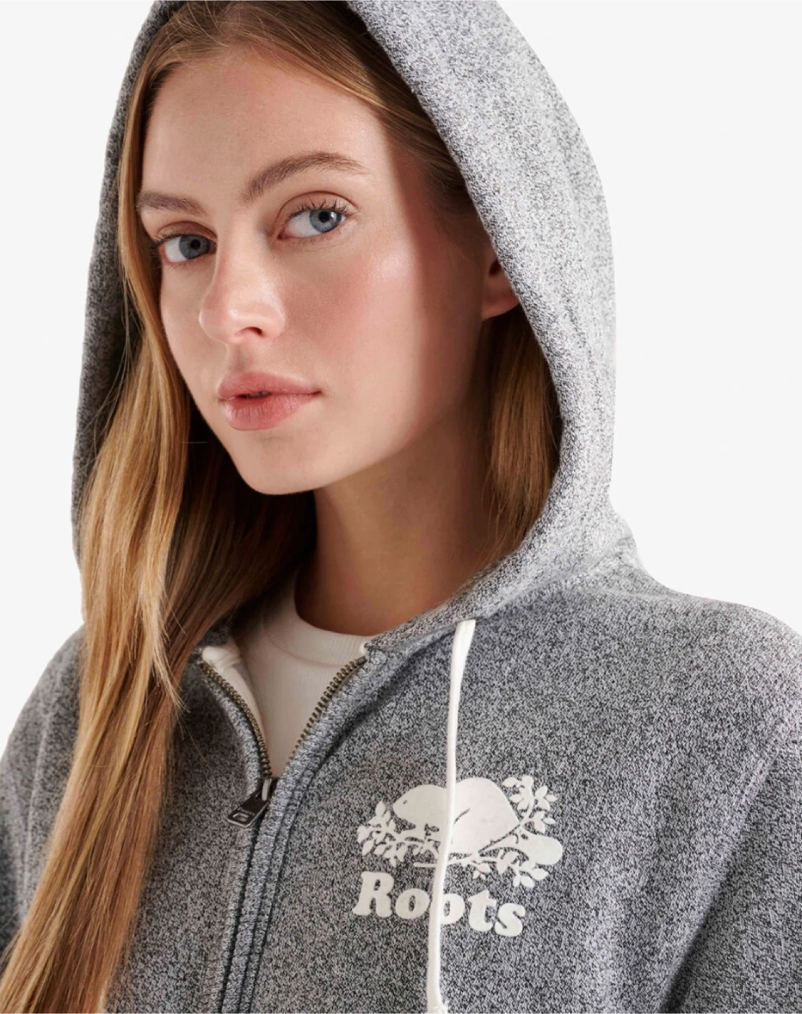 Selling a Roots Cozy Hoodie in a lovely grey pepper colour! It's a size medium and has a comfy, relaxed fit. Perfect for lounging around or running errands. It's made of soft material and has a hood with a 3/4 zipper. Feel free to reach out if you're interested.