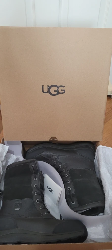 Brand new pair of UGG Adirondack Boot III. They are black and women's size 8.5. These boots are great for keeping your feet warm and dry during the winter months.