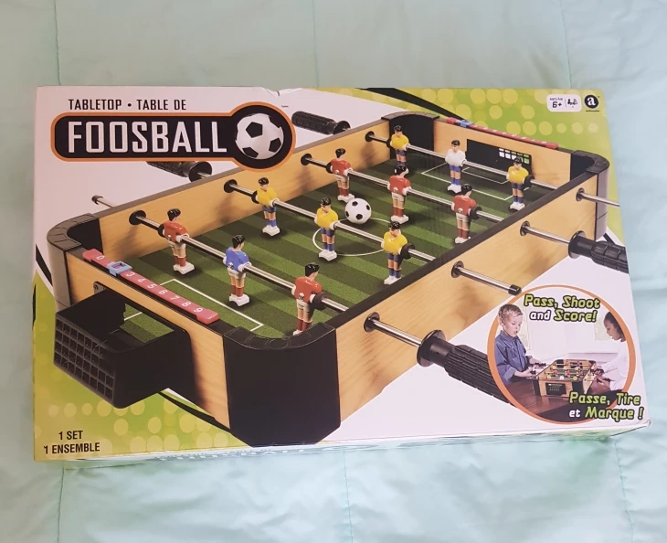 Get ready for some tabletop foosball action! This set is perfect for family fun and friendly competition. It's in great condition and comes with everything you need to start playing right away. Recommended for ages 6+