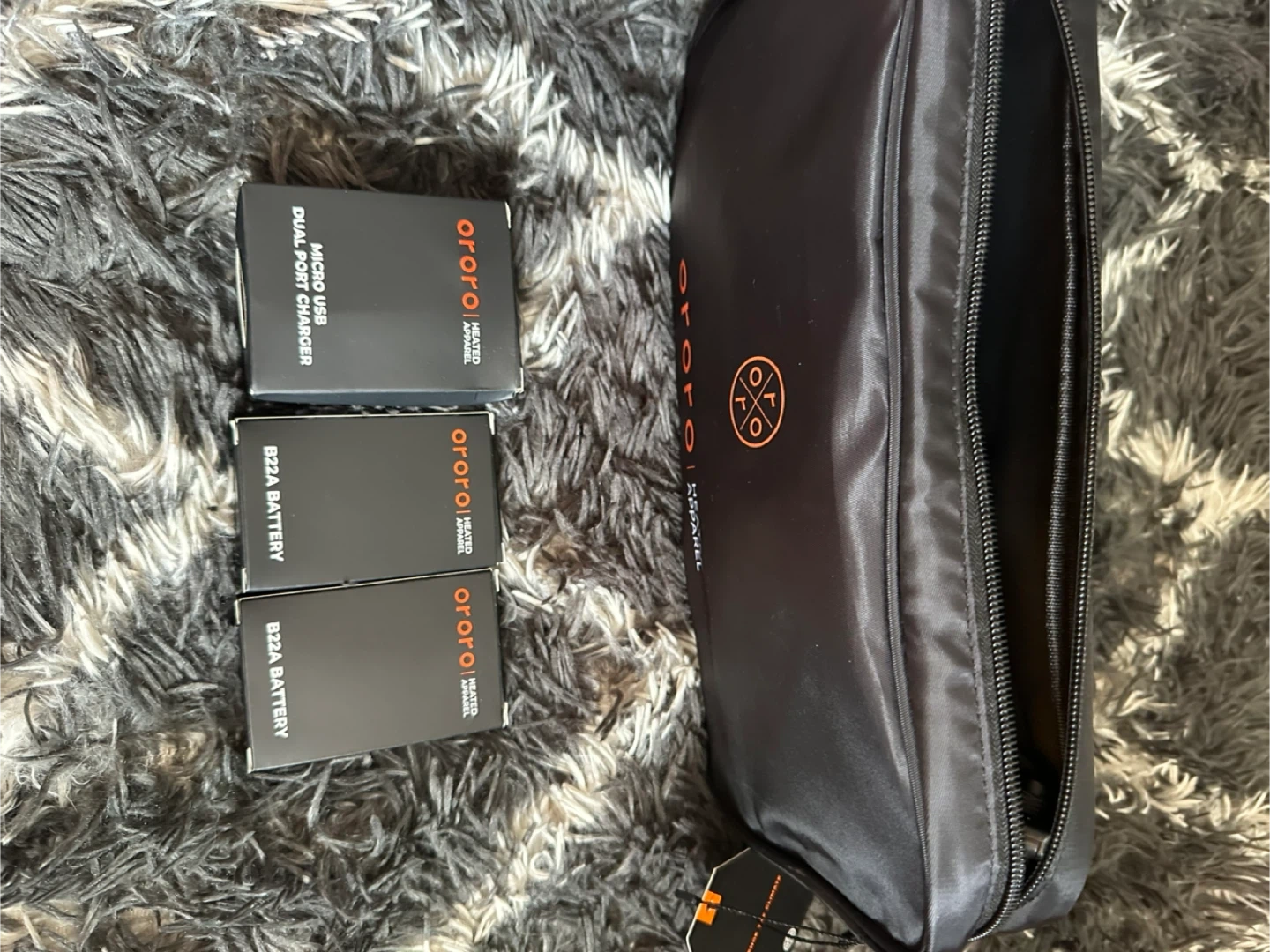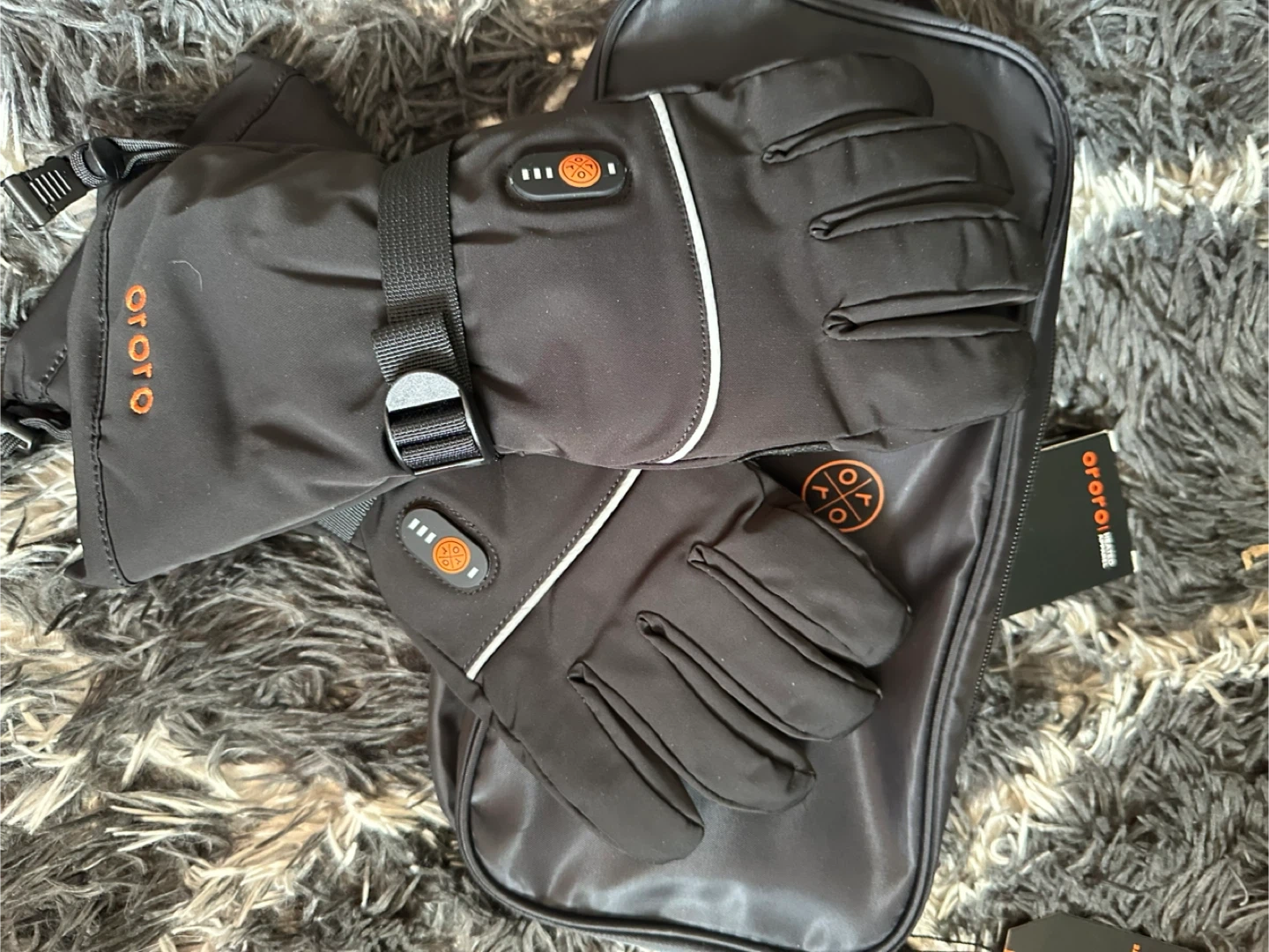 Selling a pair of ORORO Unisex Heated Buffalo Gloves in black, size small. Comes with the original carrying bag, two B22A batteries, and a micro USB dual port charger.