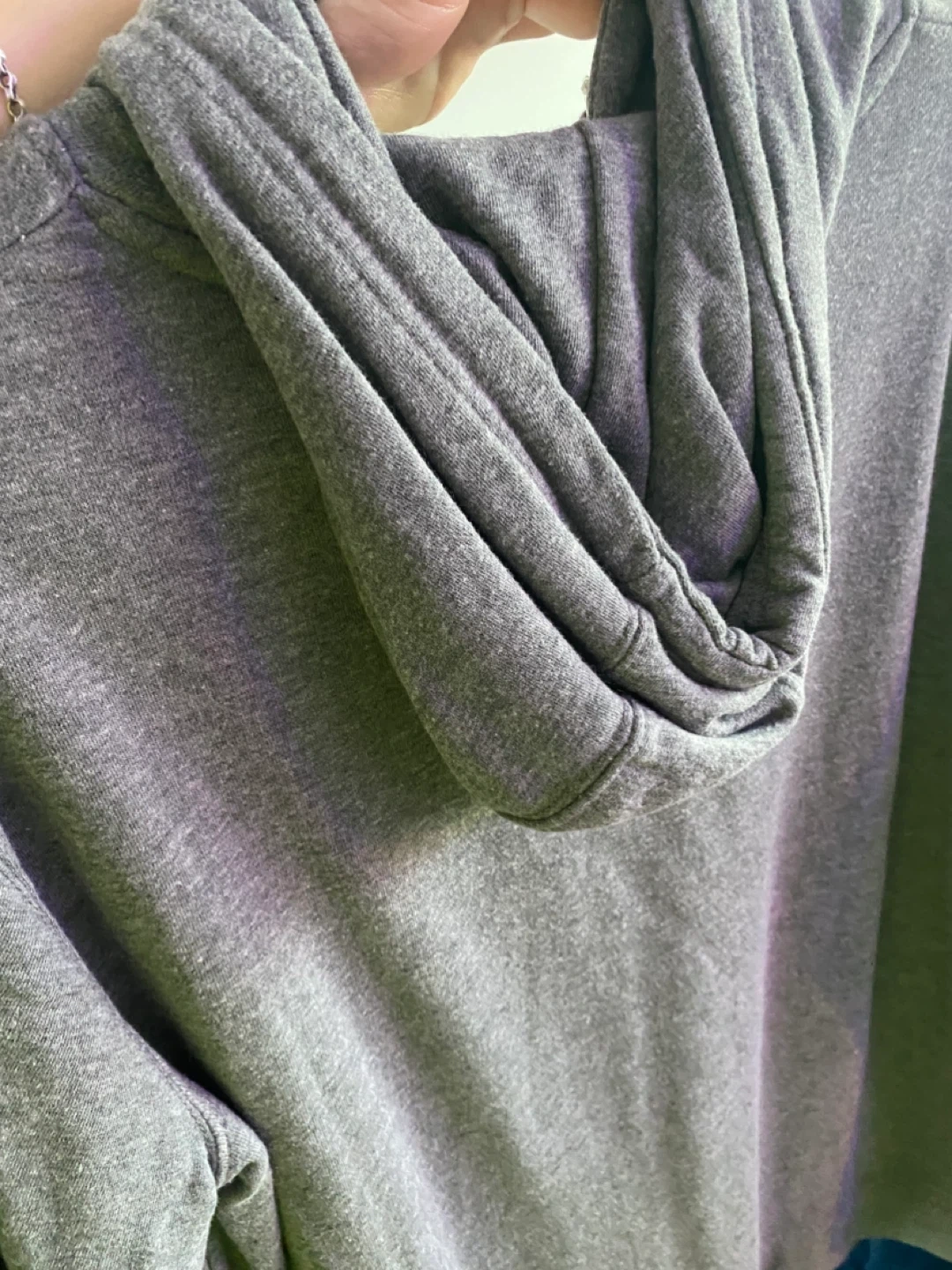 Cozy grey hoodie featuring a Nike swoosh and the text 'I JUST CAN'T' on the front! The brand is LAN/SEVEN.
