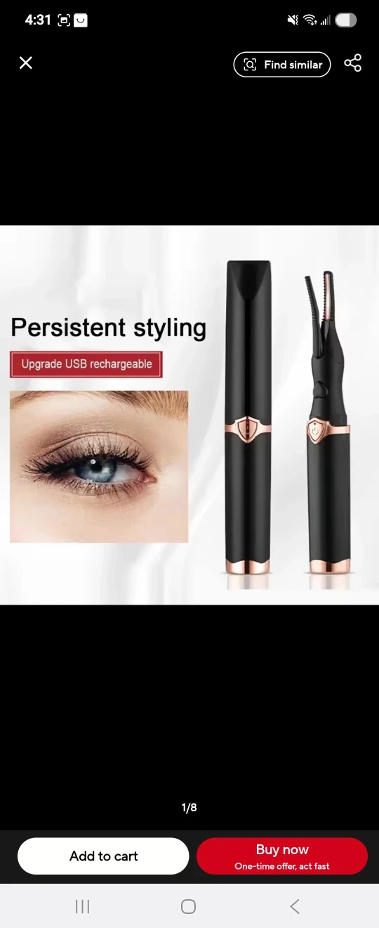 I'm selling a heated eyelash curler. It's designed for lasting shape, creating curly and moving lashes. It features 15-second rapid heating and 24-hour lasting shaping. It also offers multi-gear temperature regulation. It is USB rechargeable.