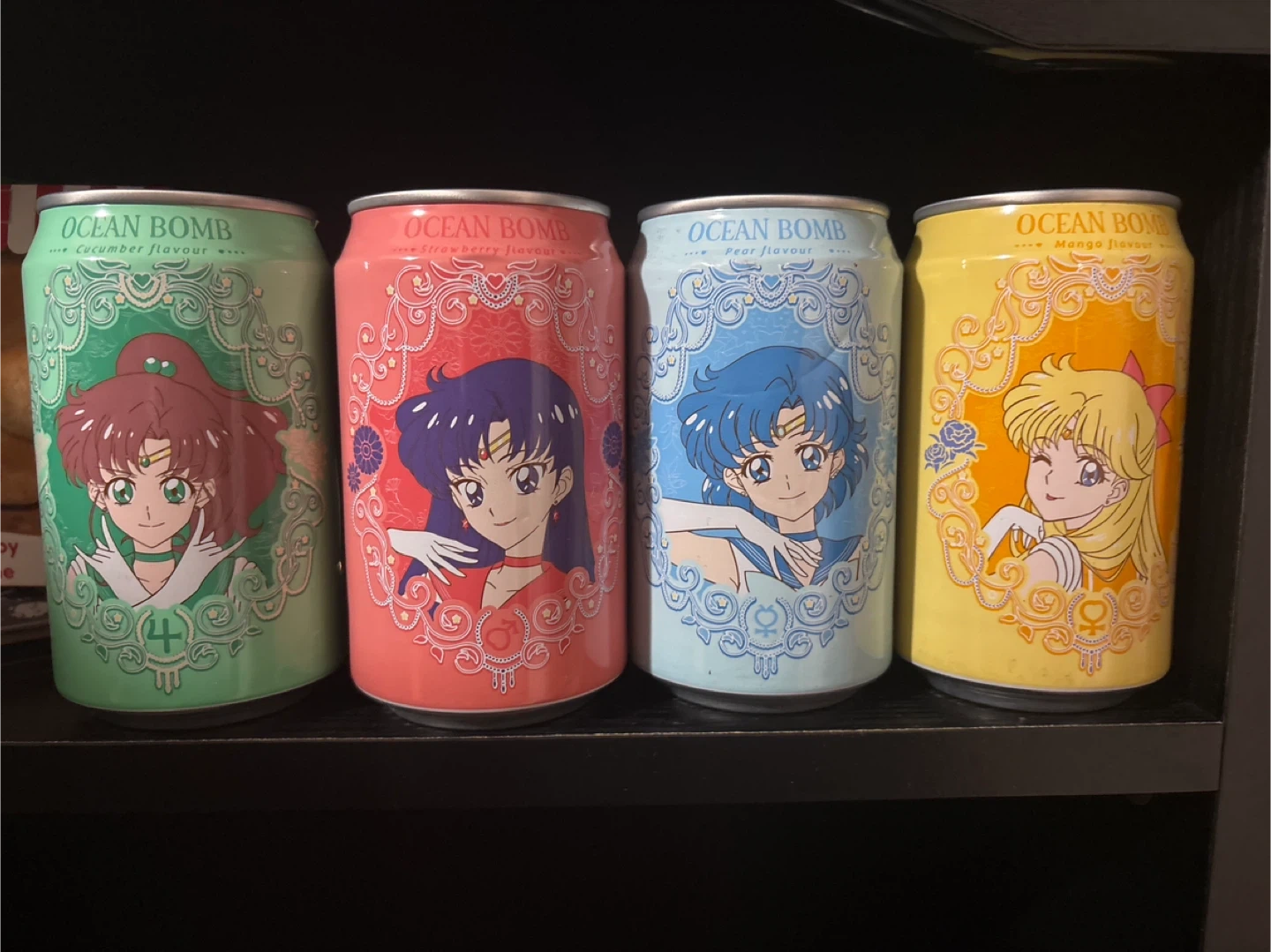 Selling a set of four (EMPTY!!!) Ocean Bomb sodas featuring Sailor Moon characters! You'll get one can of each flavour: