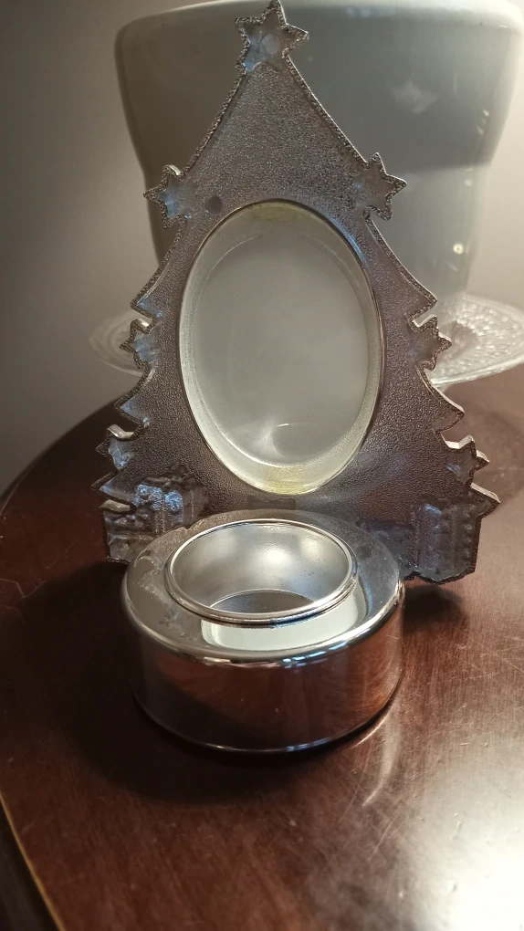 Cute Christmas tree shaped picture frame with a candle holder base. It's perfect for displaying your favourite holiday memories and adding a touch of festive cheer to any room
