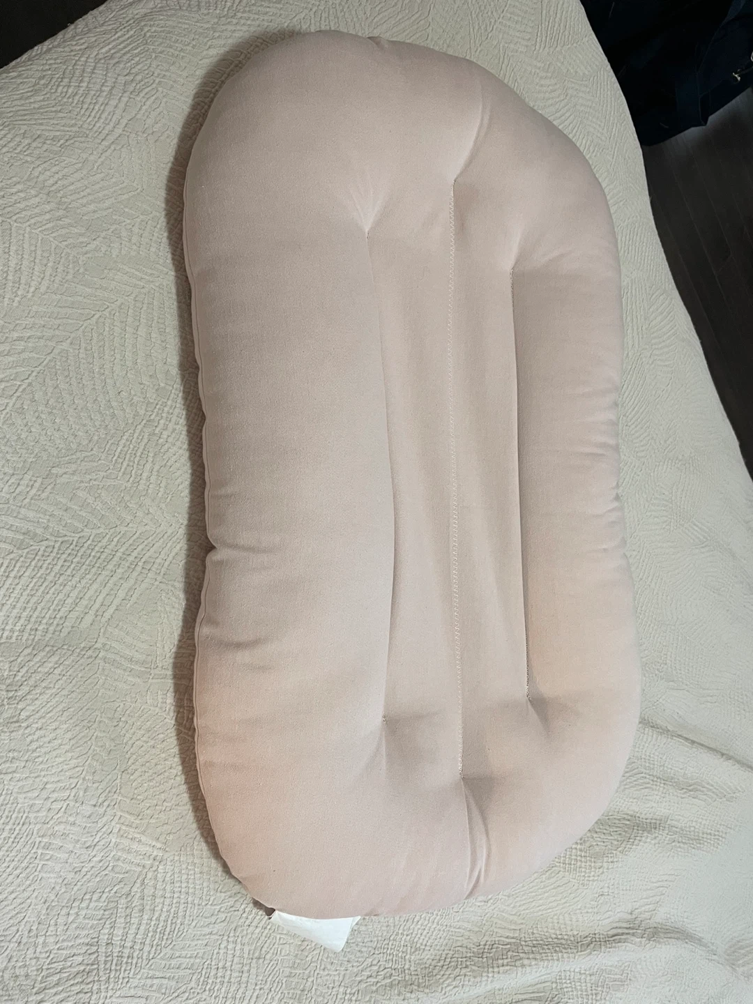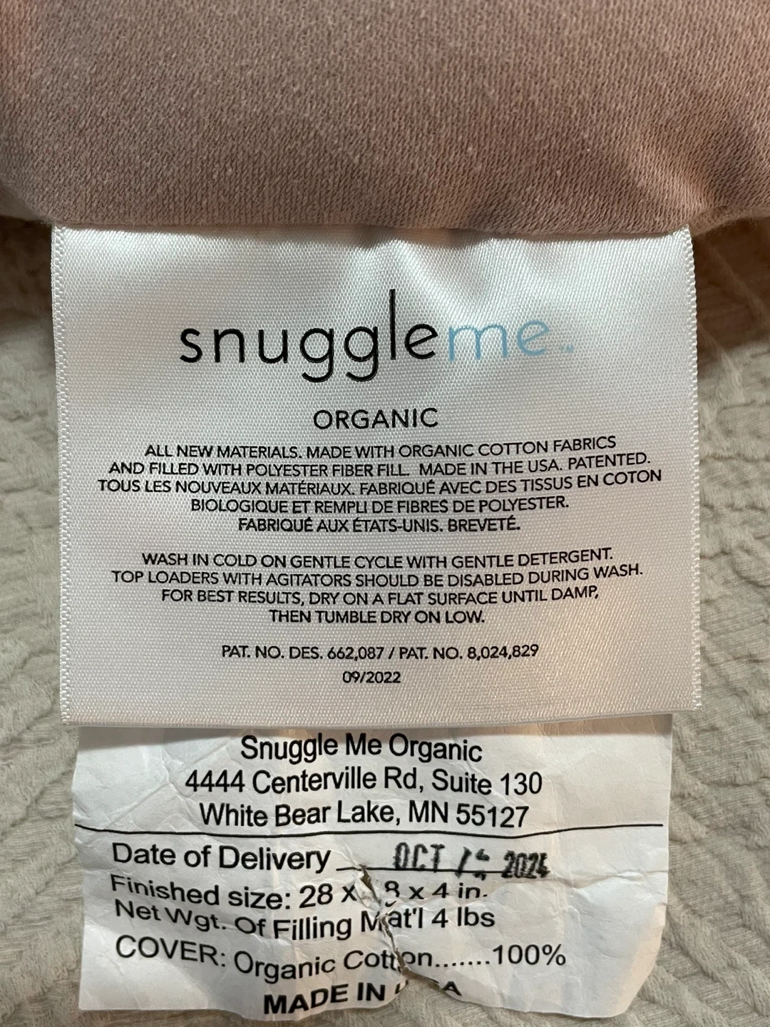 Selling a gently used Snuggle Me Organic infant lounger. It's in great shape and made with organic cotton fabrics and filled with polyester fiber fill. The finished size is 28 x 18 x 4 inches. Perfect for your little one to relax in!