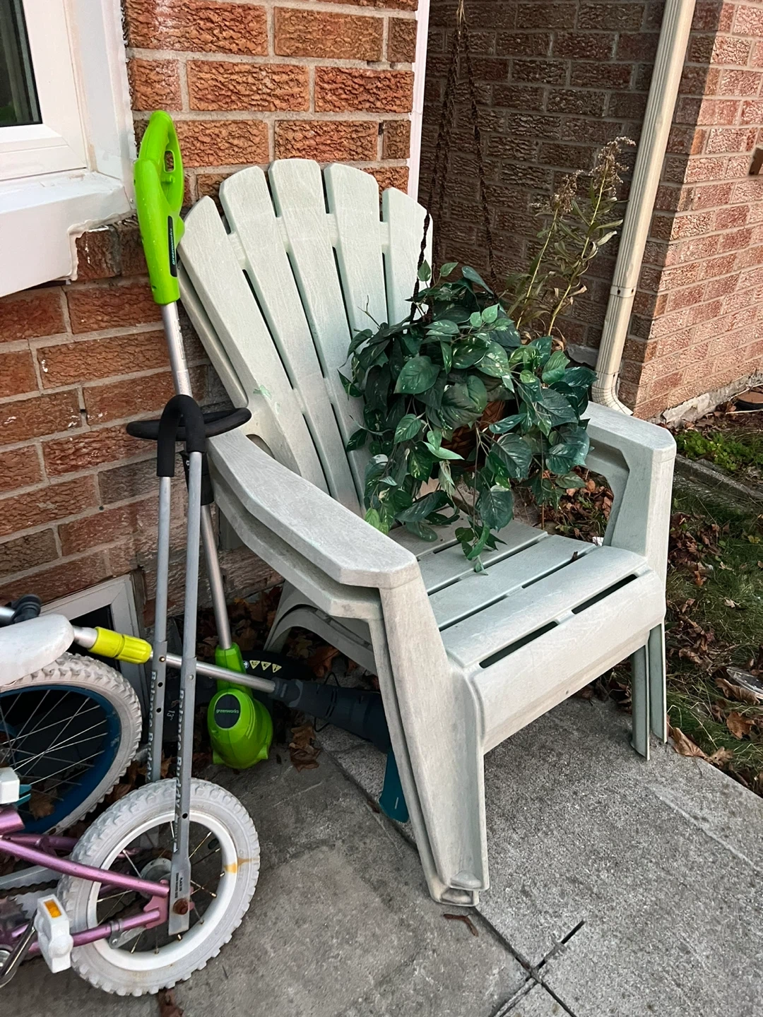 Selling Adirondack style outdoor chairs. It's in good condition and perfect for relaxing in your backyard or on your patio. It's a white colour. No damages or scratches