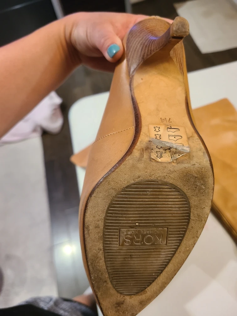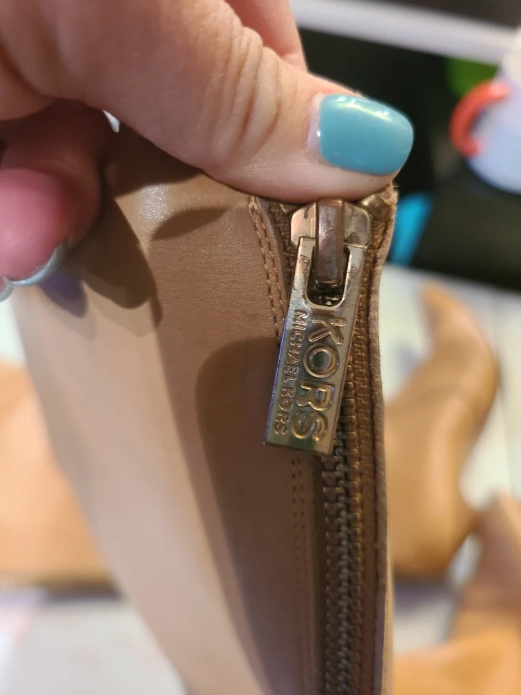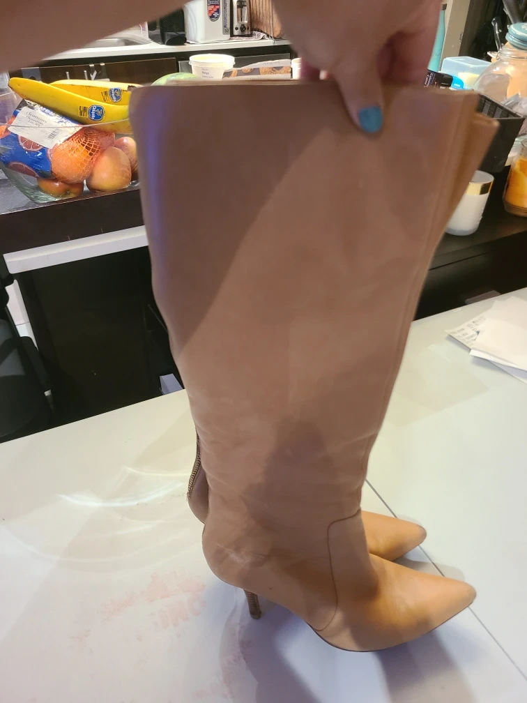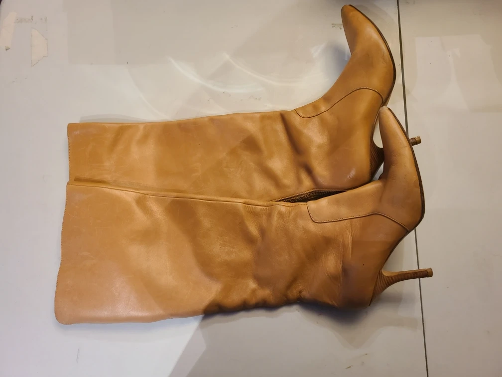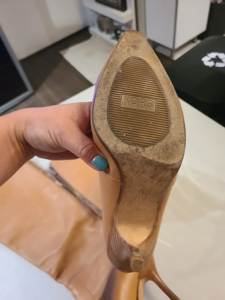 Selling a pair of light tan Michael kors leather knee-high boots with a 2" wood heel. The zip up at the back and are comfy. They show some signs of wear, but are still in good condition for their age. Perfect for adding a bit of flair to your wardrobe! Size 7