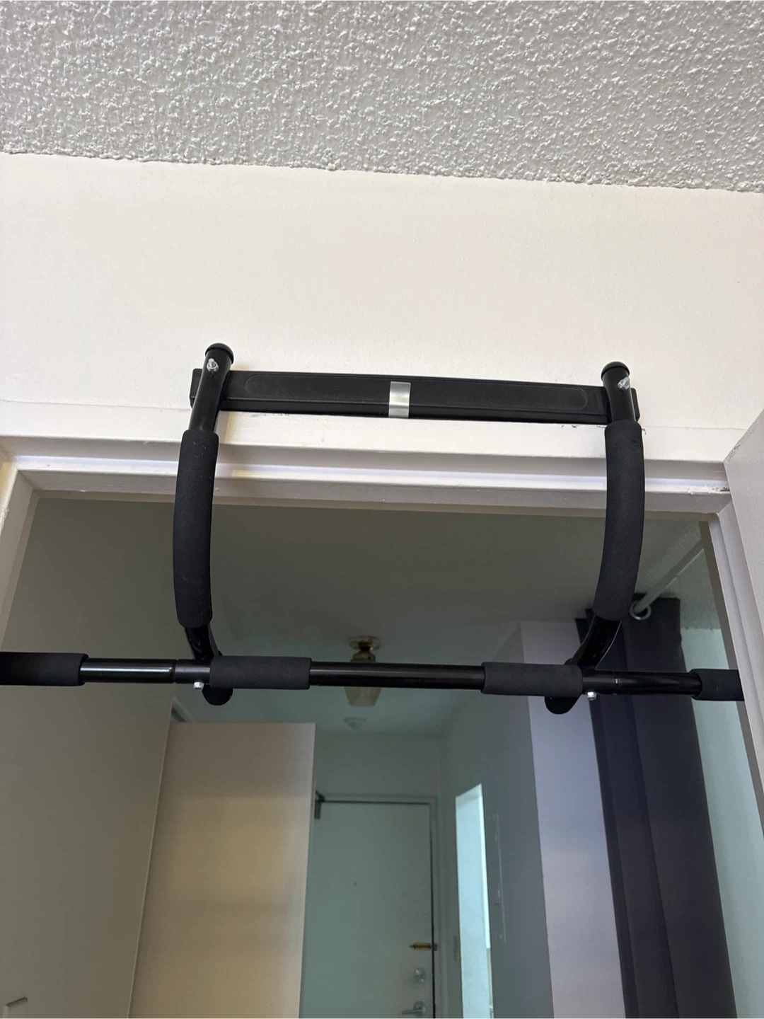 Selling a doorway pull-up bar in great condition! It's perfect for doing pull-ups at home without needing to drill anything into the wall. It's easy to install and remove, and the foam grips make it comfortable to use