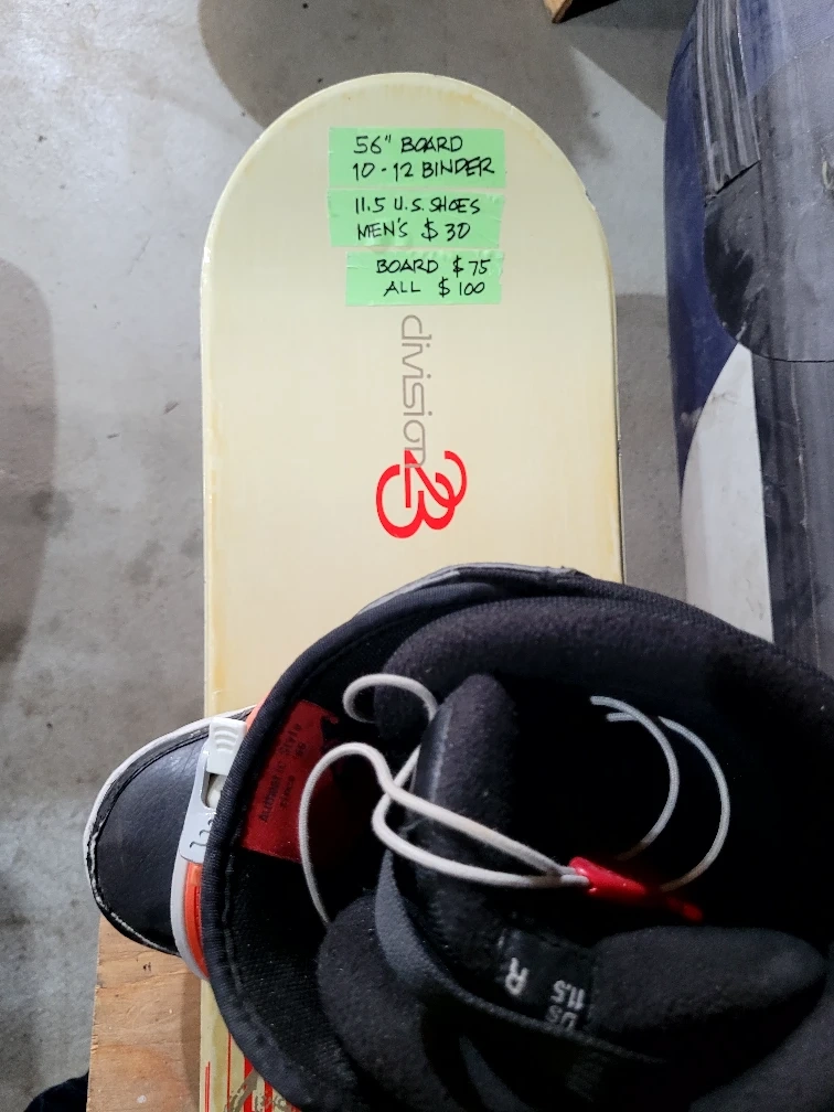 Buy & SellDivision 23 Snowboard, Vans Boots, Size 11.5Division 23 Snowboard, Vans Boots, Size 11.5$70Selling a snowboard with bindings and boots! The board is a Division 23. The boots are Vans, size 11.5 US men's. The board is 56".WHERE TO MEETCheck LocationView MapSELLERverifiedJayHastings Sunrise600 reviews0 chats·1 favorites·20 views