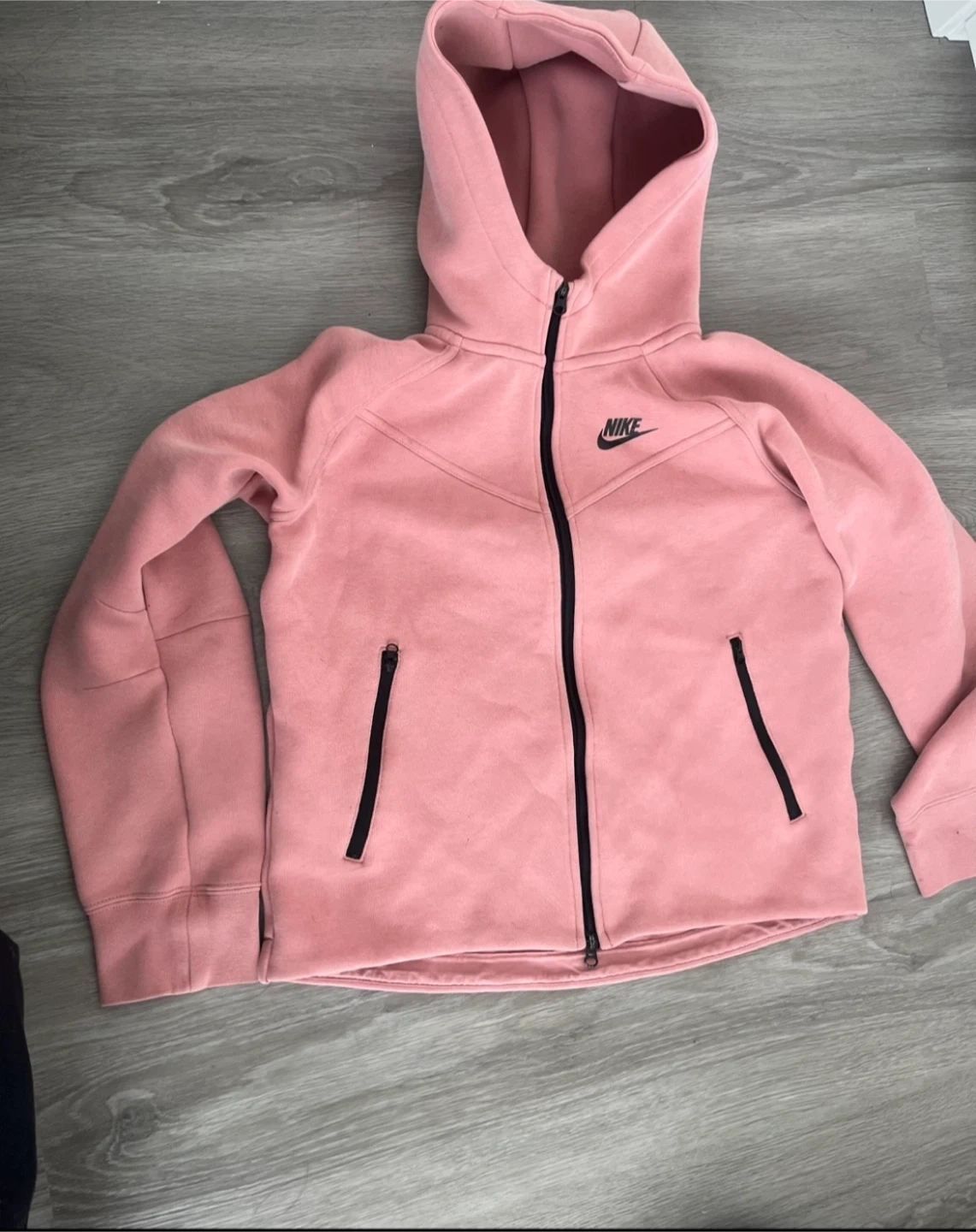Selling a Nike Sportswear Women’s Tech Fleece Windrunner Full-Zip Hoodie in a lovely light pink colour! It's a size large and in great condition. Perfect for staying cozy and stylish! Gets a lot of compliments for its color and style!:) Size is large, but the fleece is a Woman’s crop, I am like 5’2 and it would be right at my waist. Original price $120-134