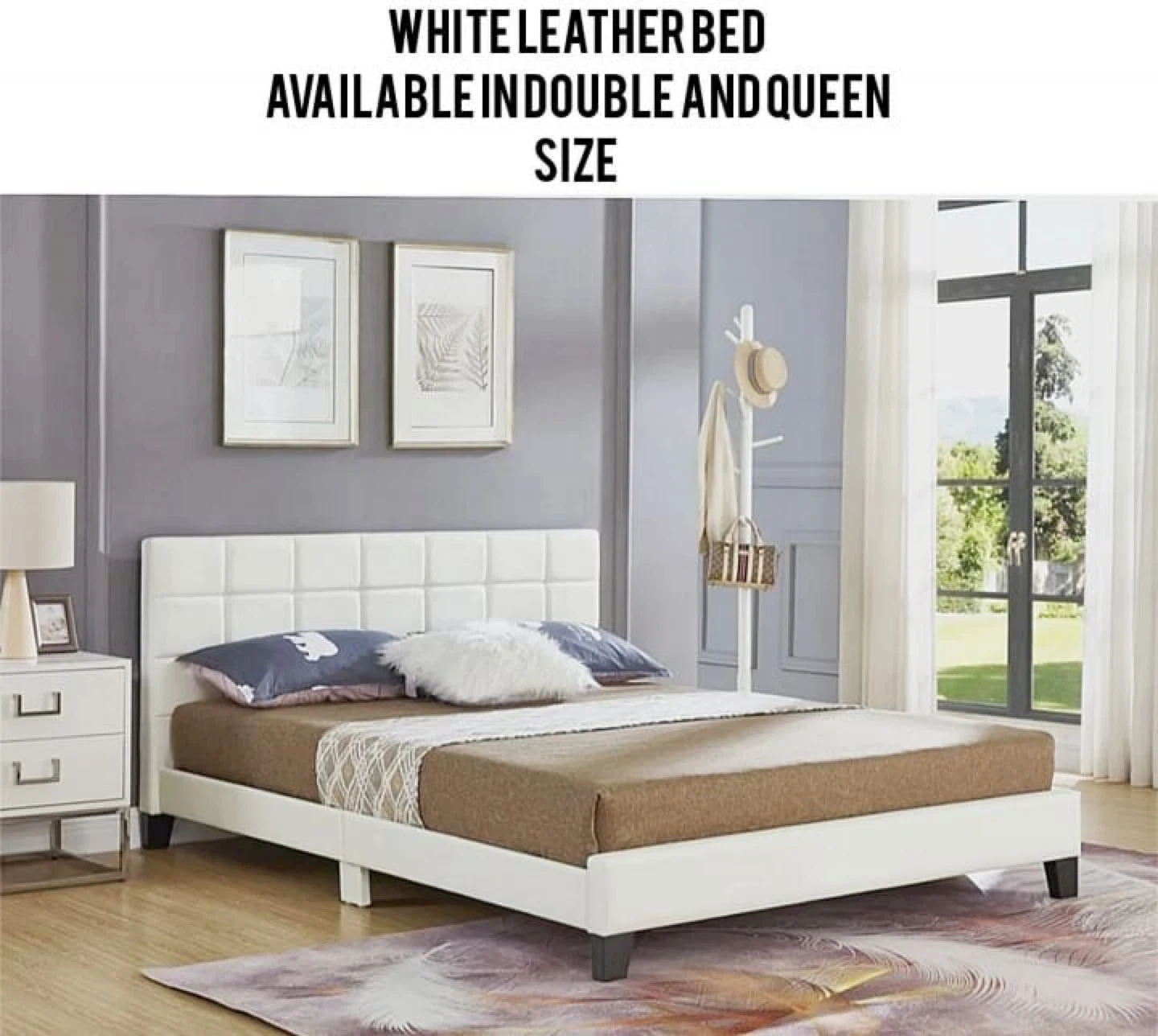 Looking to sell this upholstered platform bed frame. It's available in single,double and queen and king size. The bed frame comes in a variety of colors, including grey, white, and black. Perfect for adding a touch of modern style to your bedroom